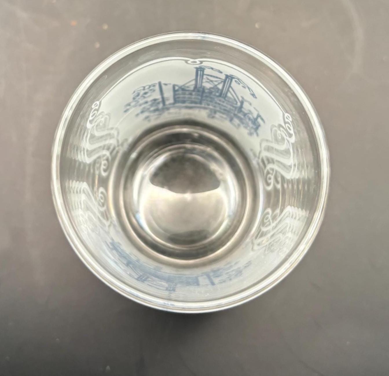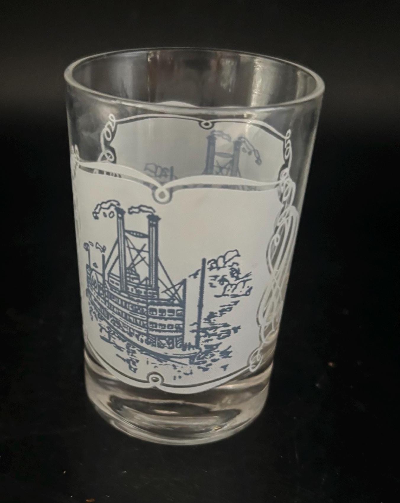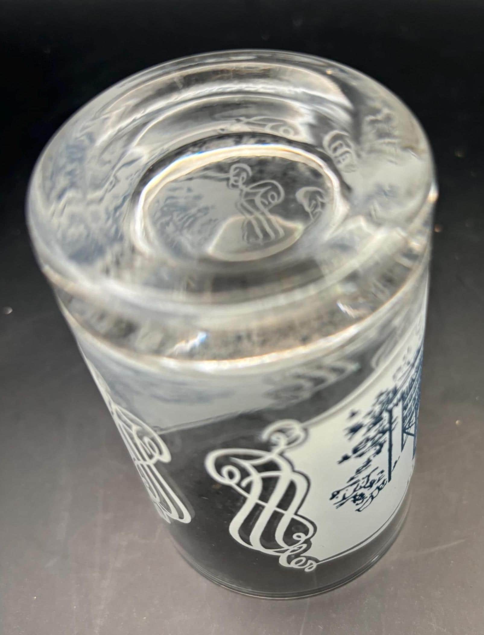 Discover this charming Vintage Currier & Ives Glass. It measures approximately 2 1/4" wide, 3 1/2" high.