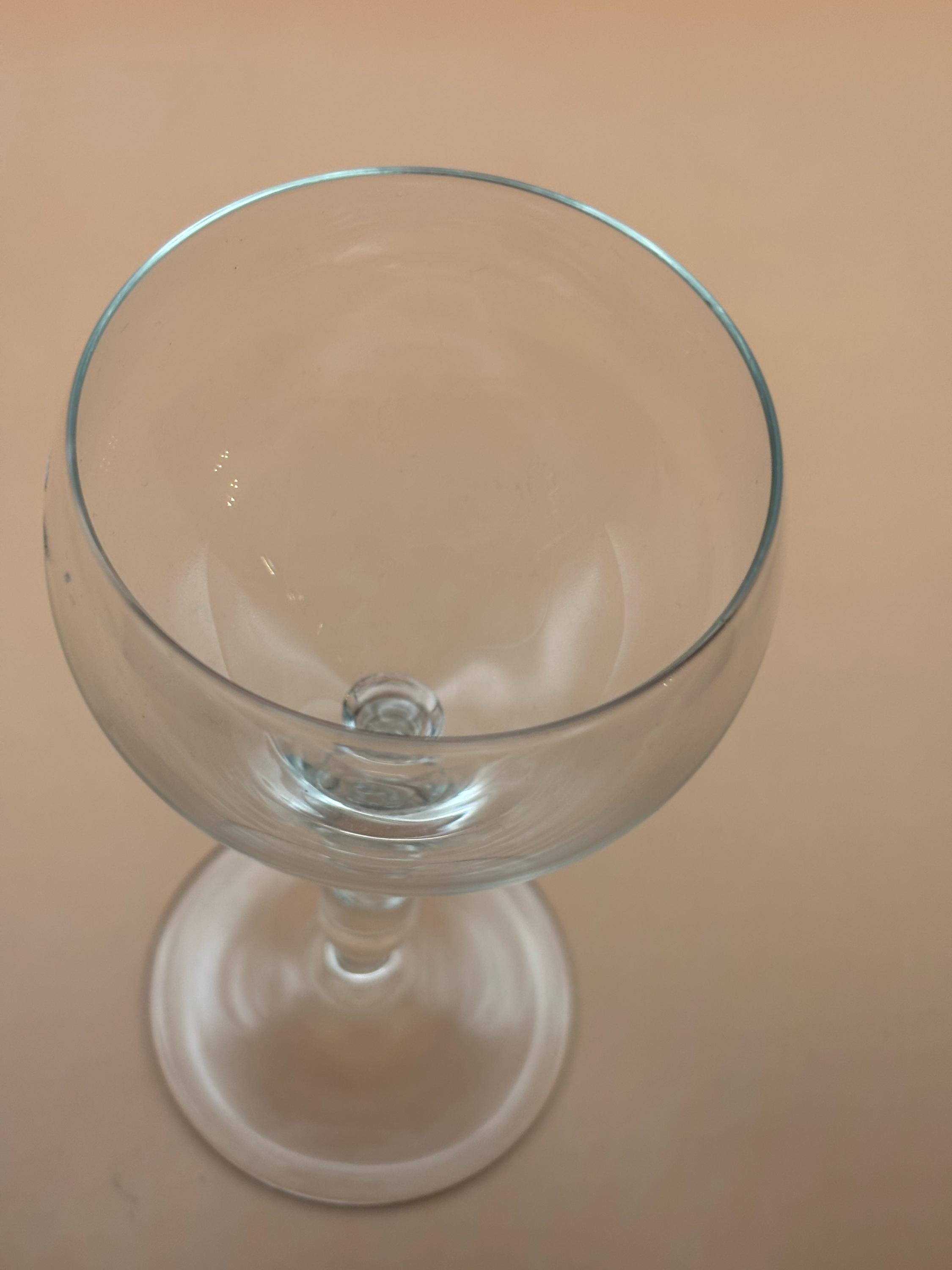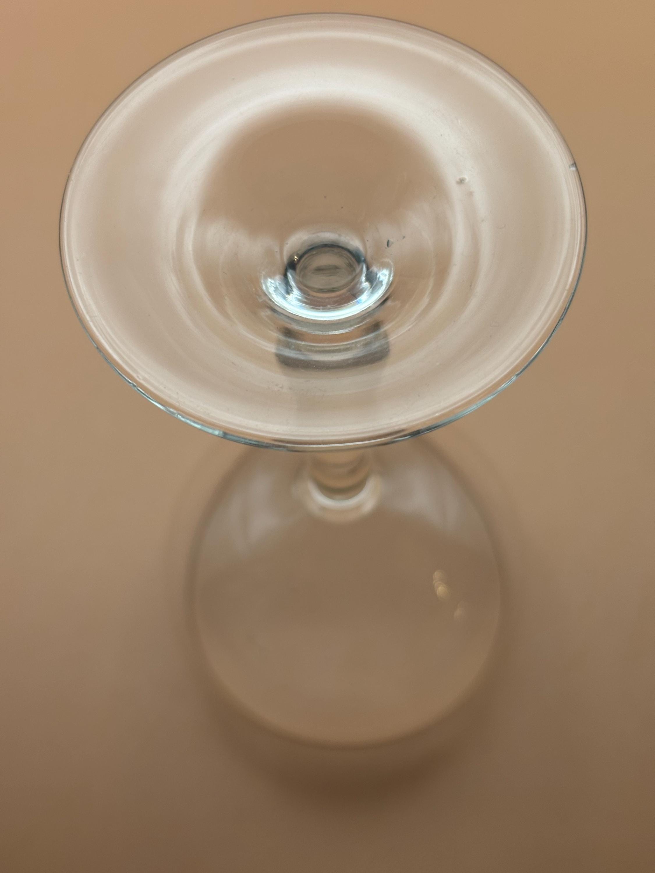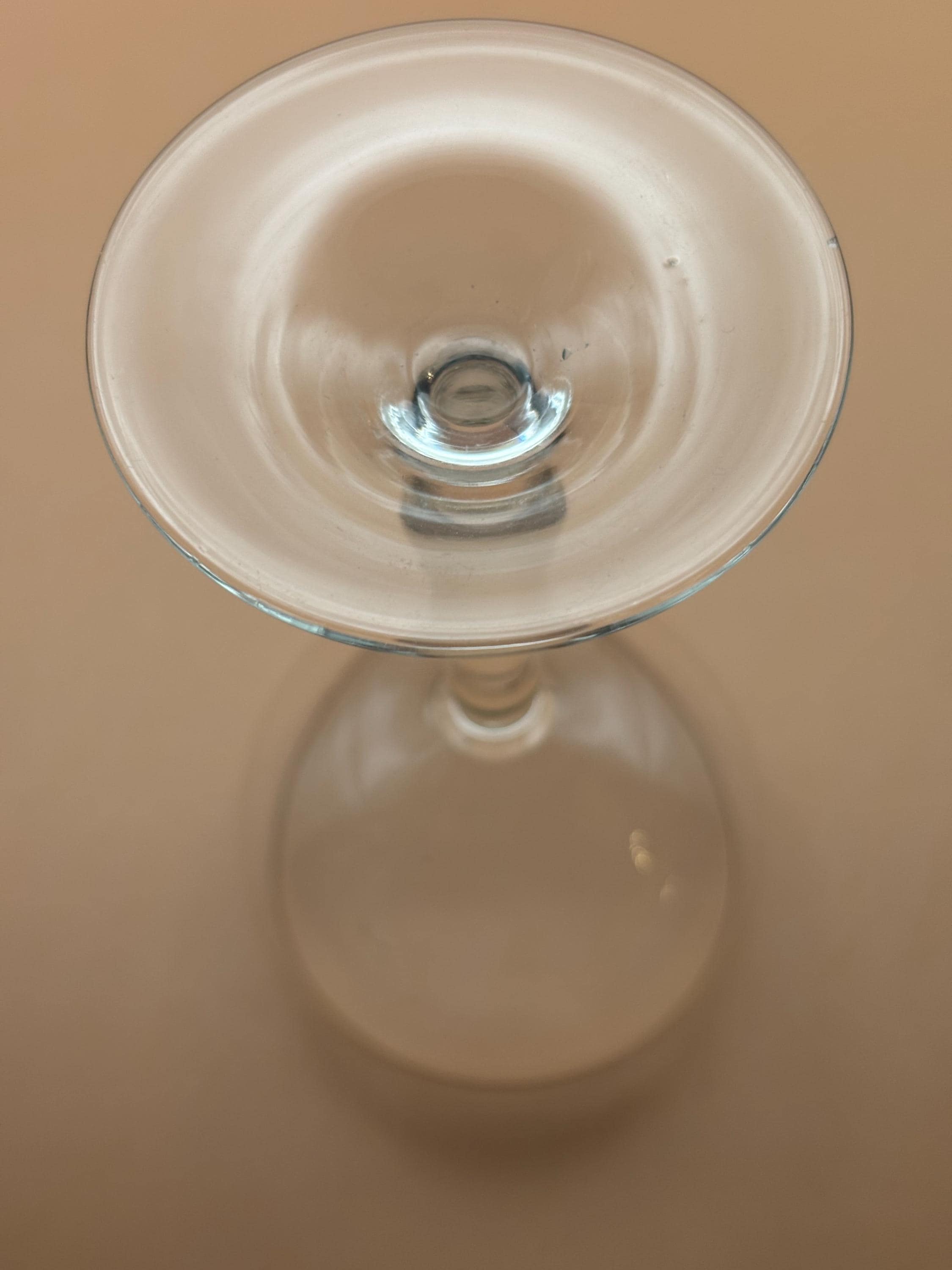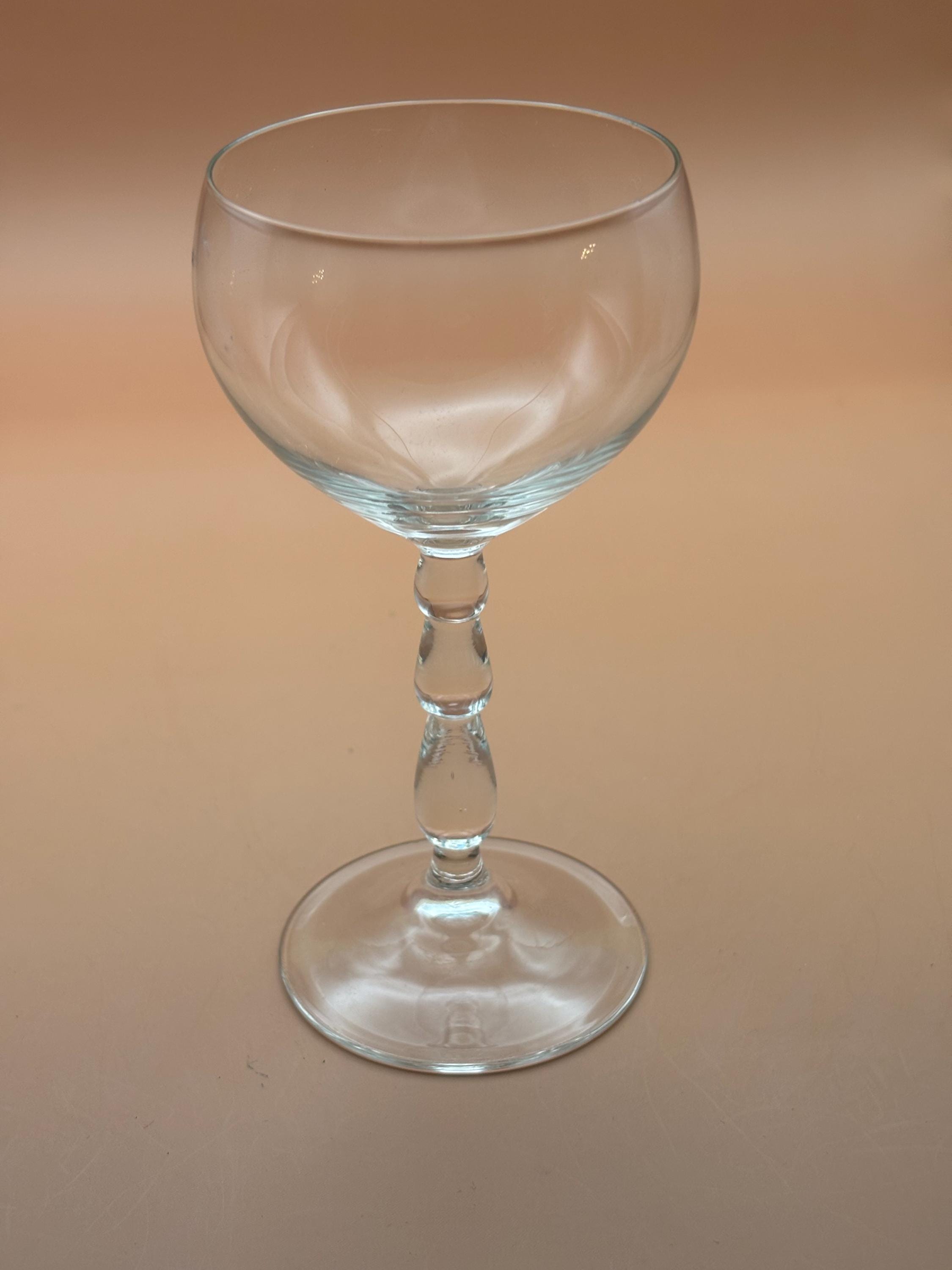 We have a Candlewick Champagne Glass or Sherbet . It measures approximately 2 1/2" wide, 5 1/4" high.
