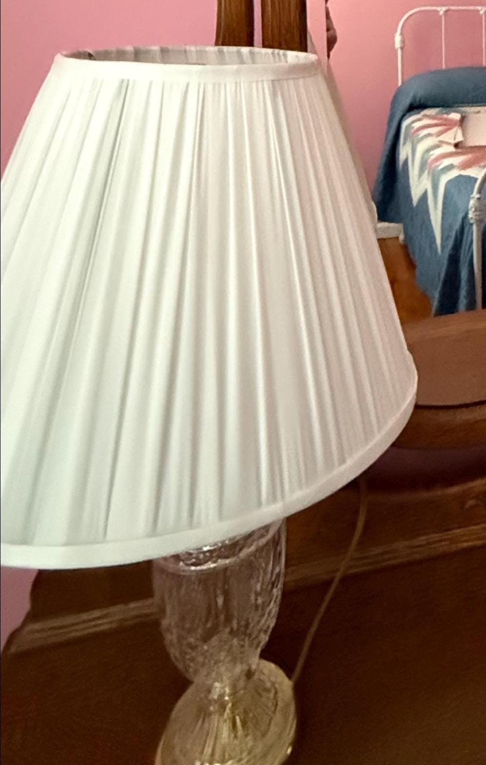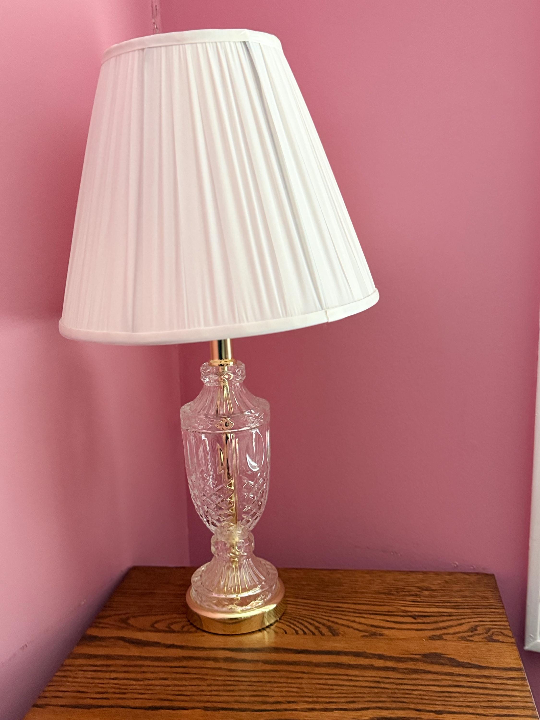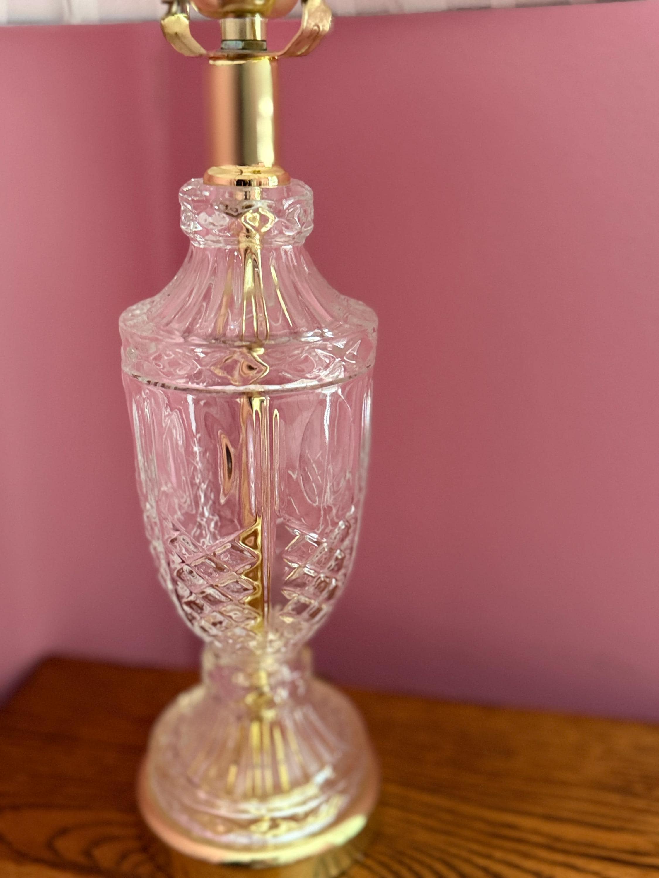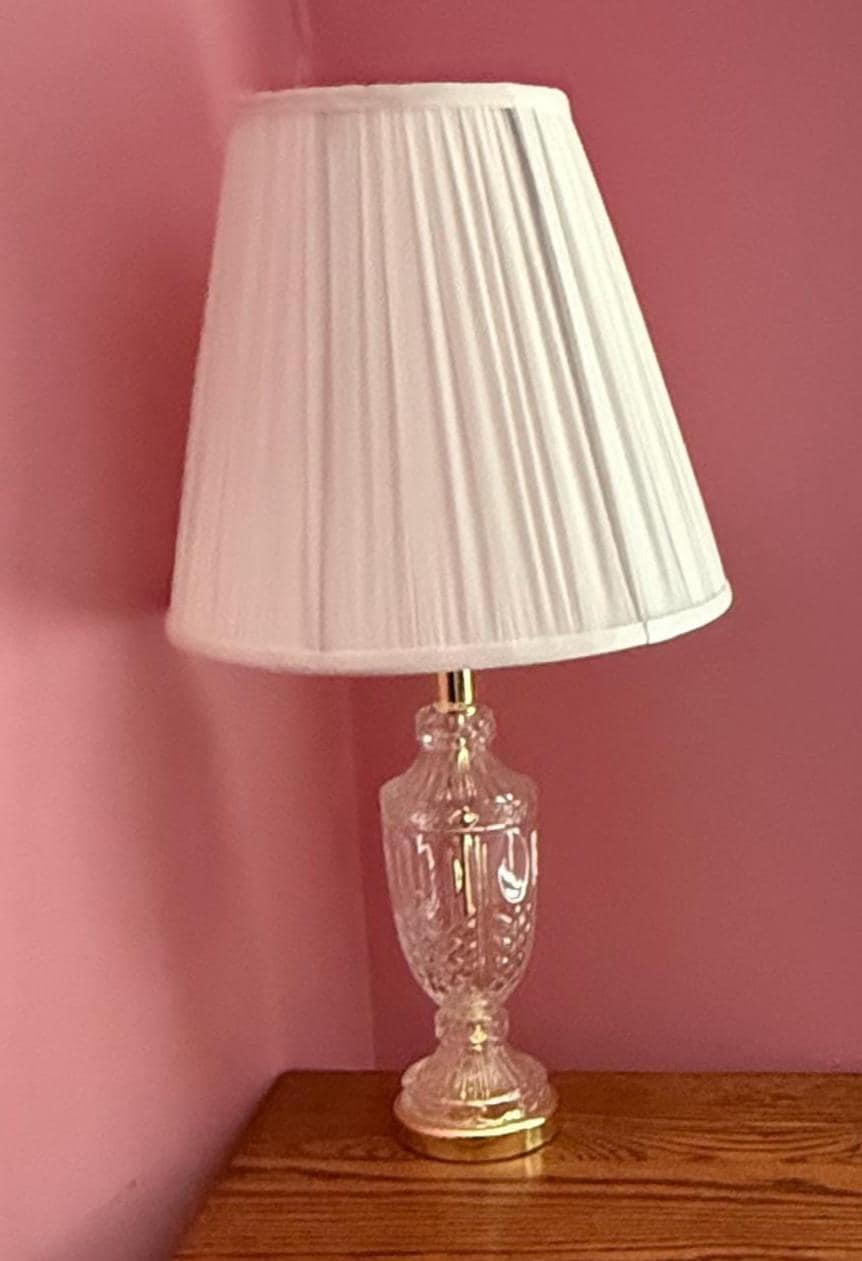 We have a gorgeous Vintage Crystal Lamp with Shade. This is for 1 lamp, but we have 3 currently available. This piece is in Very Good Condition.