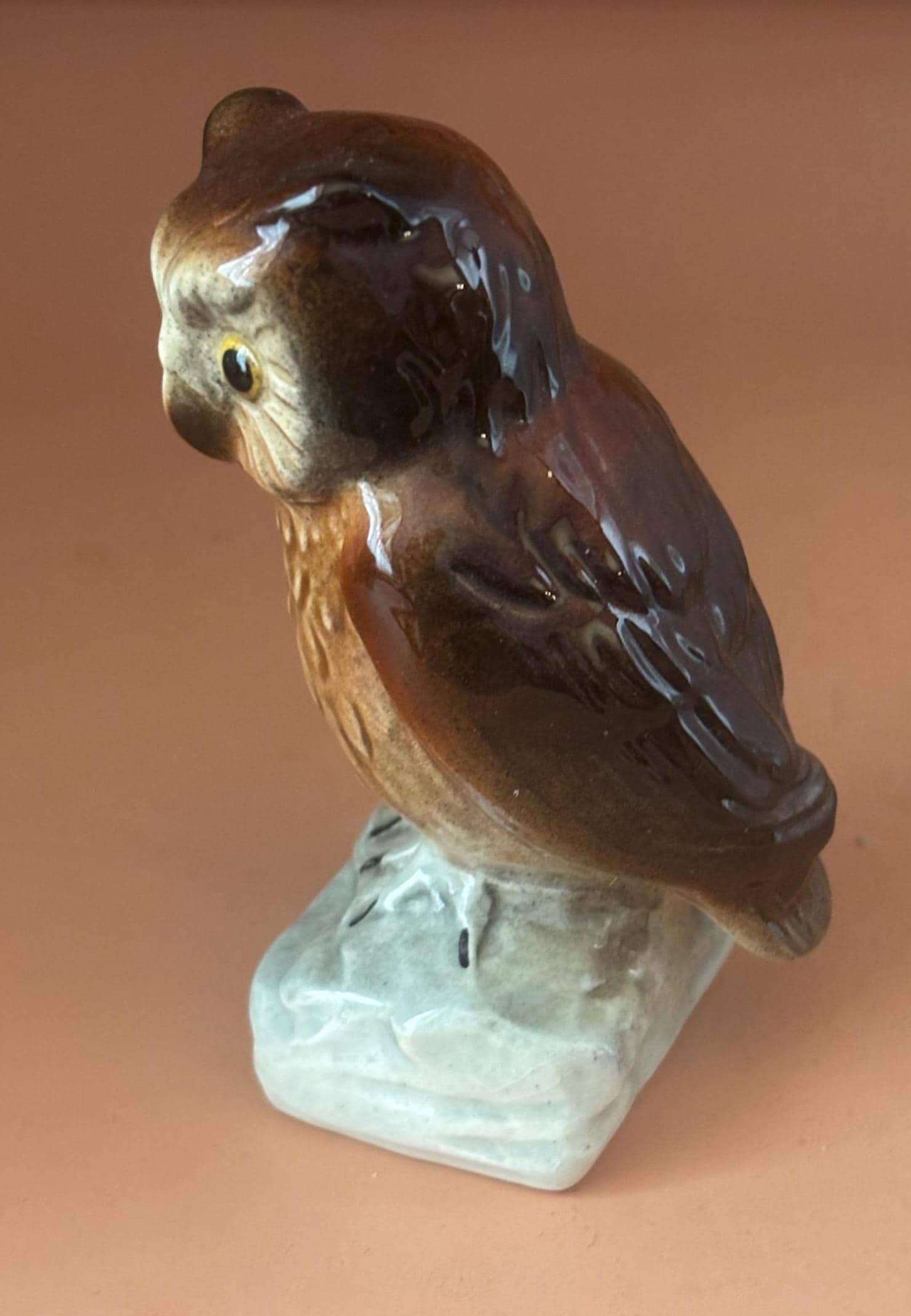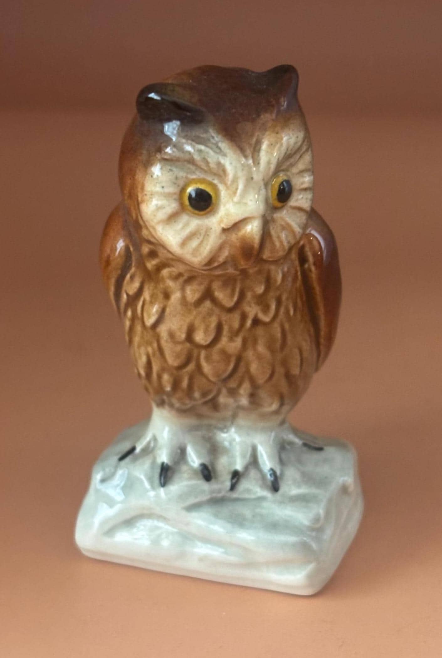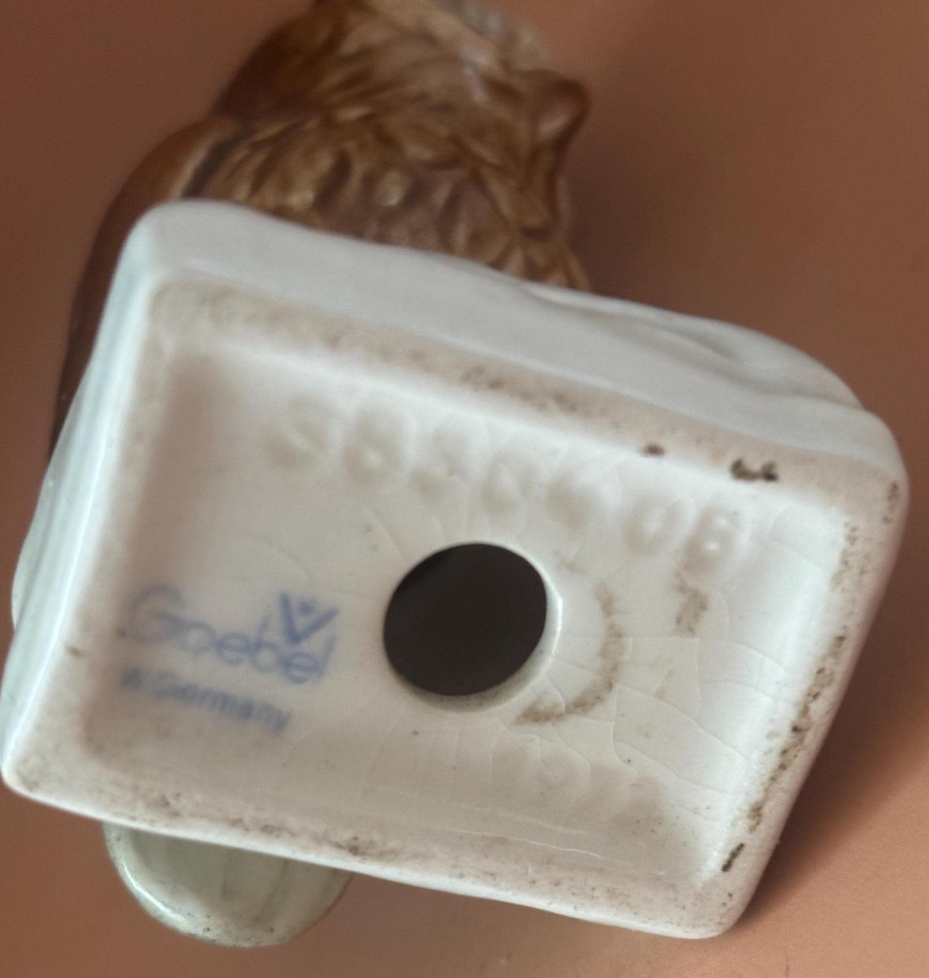 We have a gorgeous Vintage Goebel West Germany Porcelain Owl Figurine. It is signed Goebel and numbered38304/08 on the bottom. It measures approximately 3 1/4" high, 1 1/2" at its base.