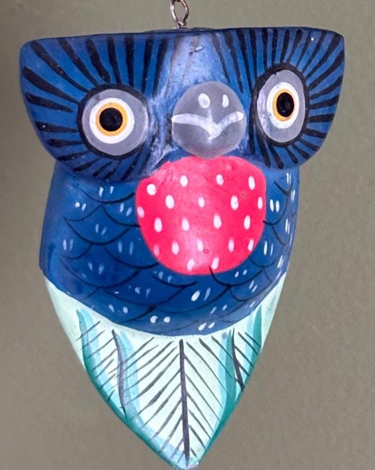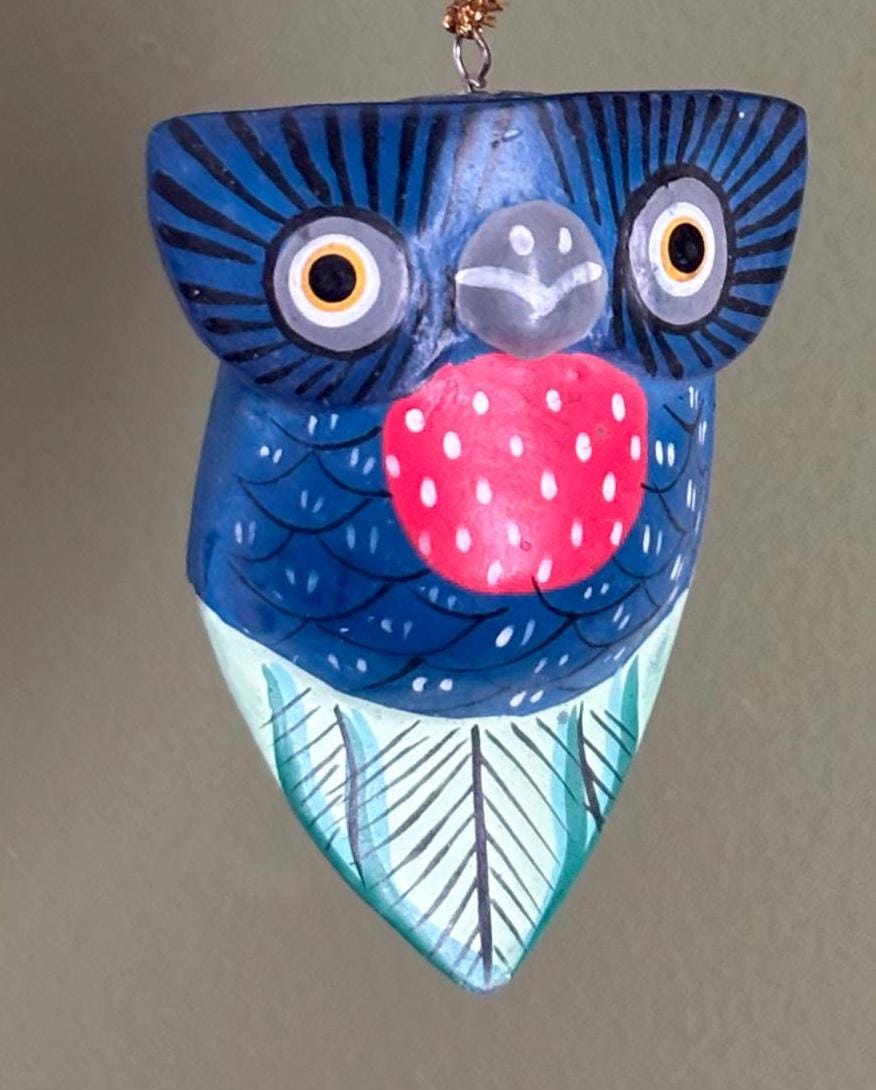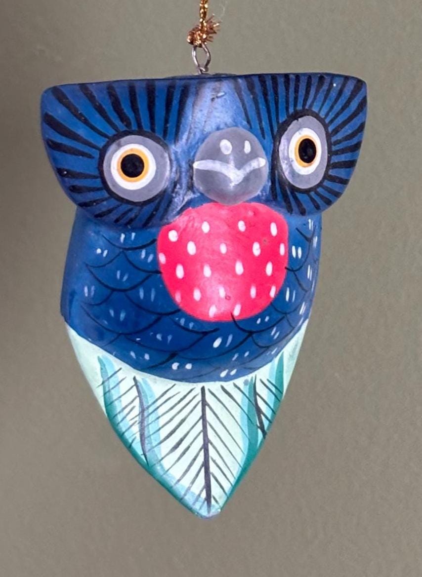We absolutely adore this Vintage Hand Carved/Hand Painted Owl Ornament. It is colorful and bright. It would make a wonderful gift for that OWL Lover!