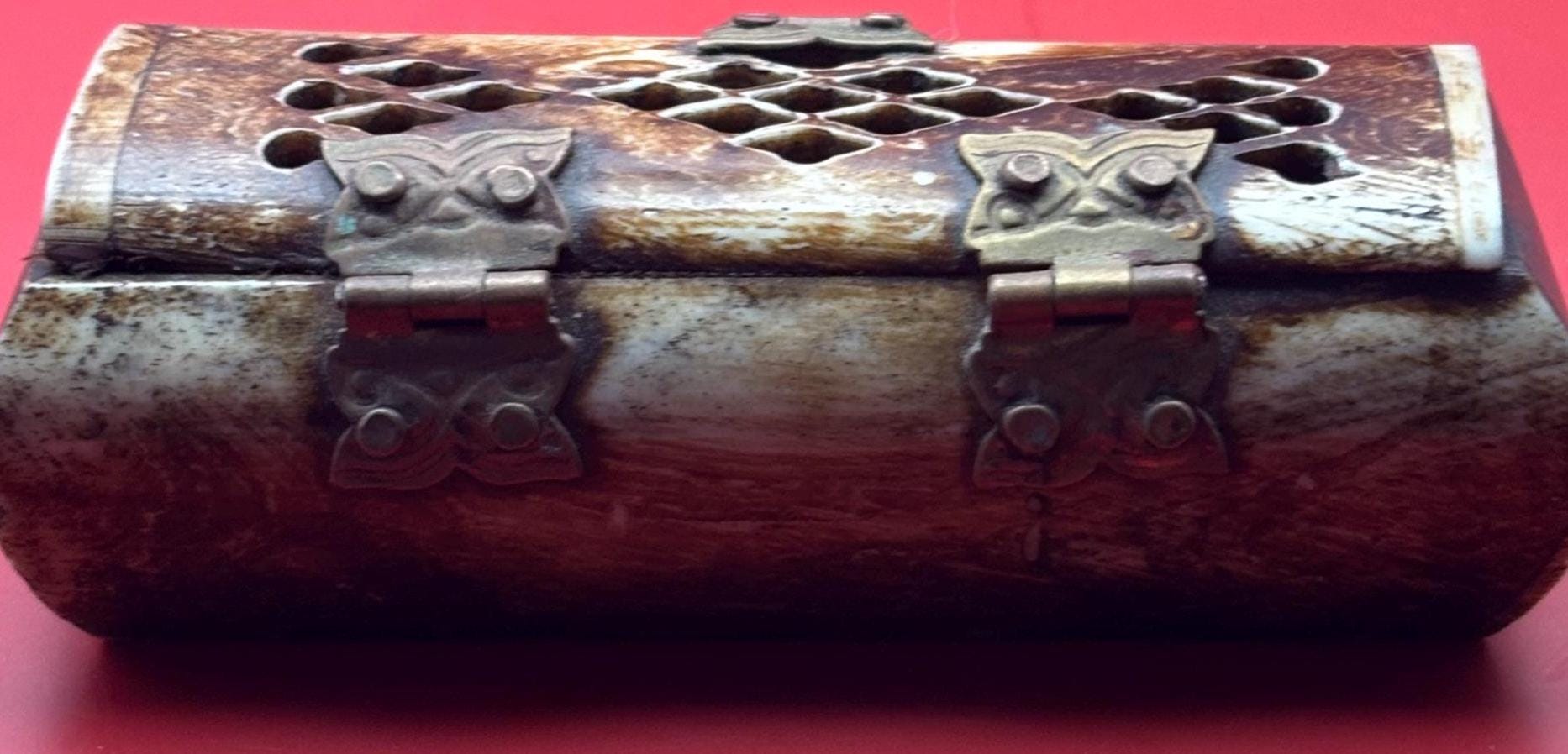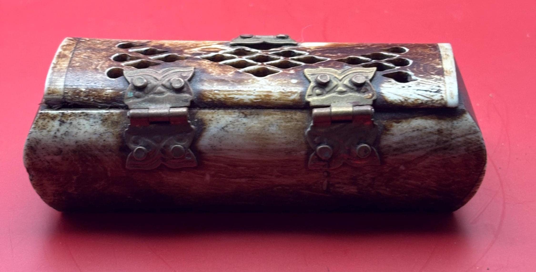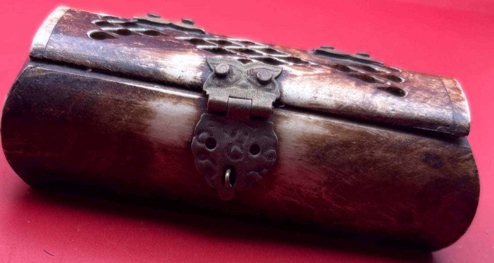 We LOVE this Vintage Owl Trinket Box featuring Owl Hinges! A lovely piece, and a perfect addition for owl lovers and vintage enthusiasts alike. Crafted from bone with intricate brass accents, this miniature jewelry box exudes timeless elegance and unique character. Its adorable owl motif on the lid adds a whimsical touch, making it both a functional storage piece and a decorative collectible.