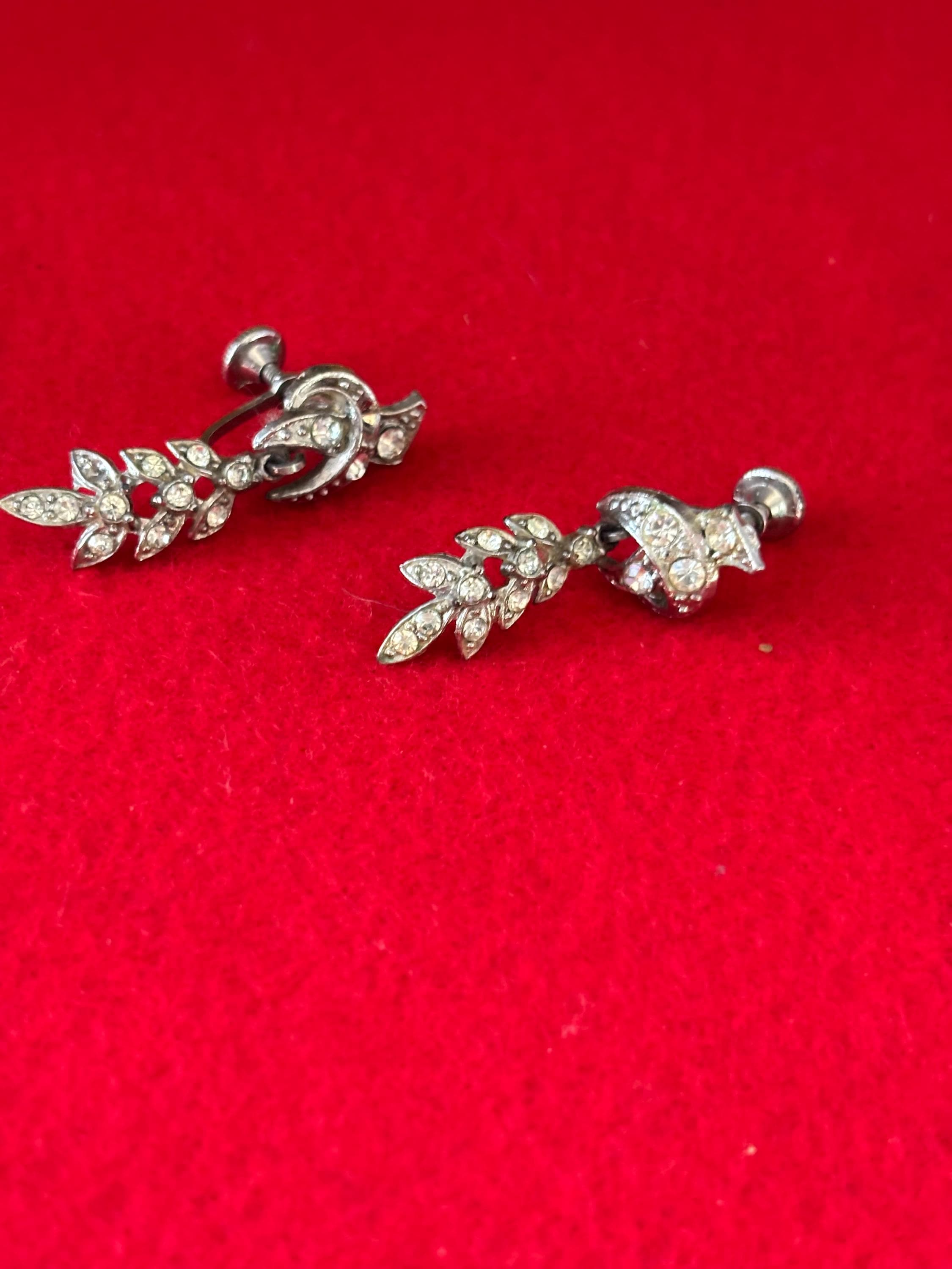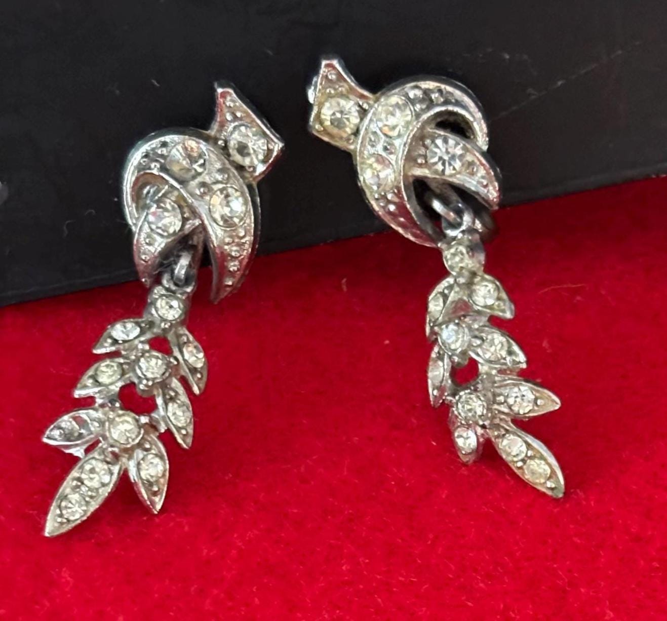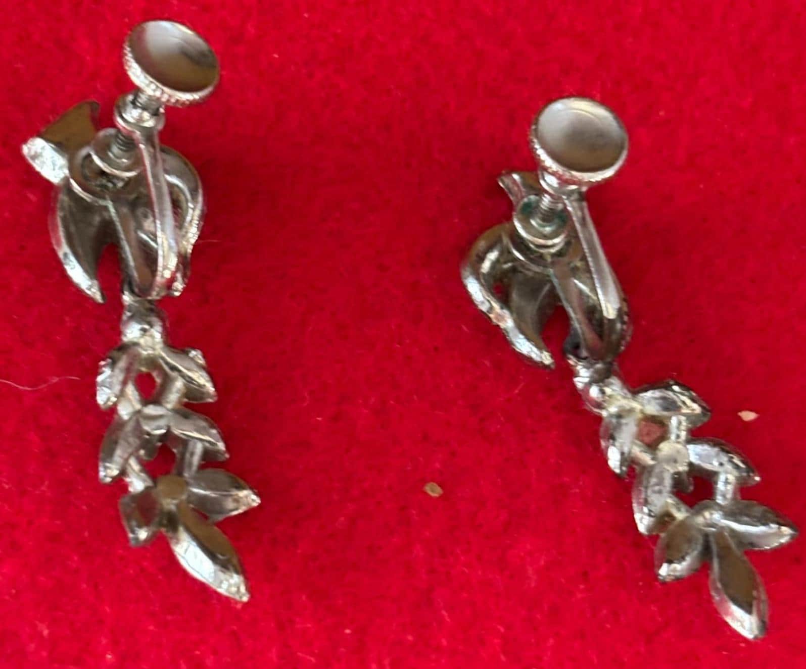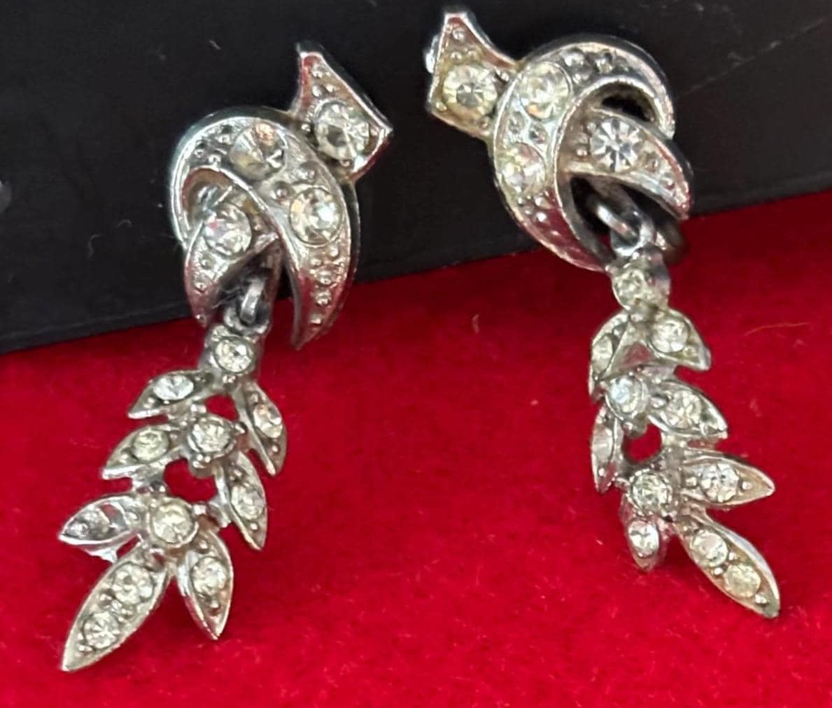 We have a lovely Vintage Rhinestone Dangle Silver Bird and Leaf Earrings.