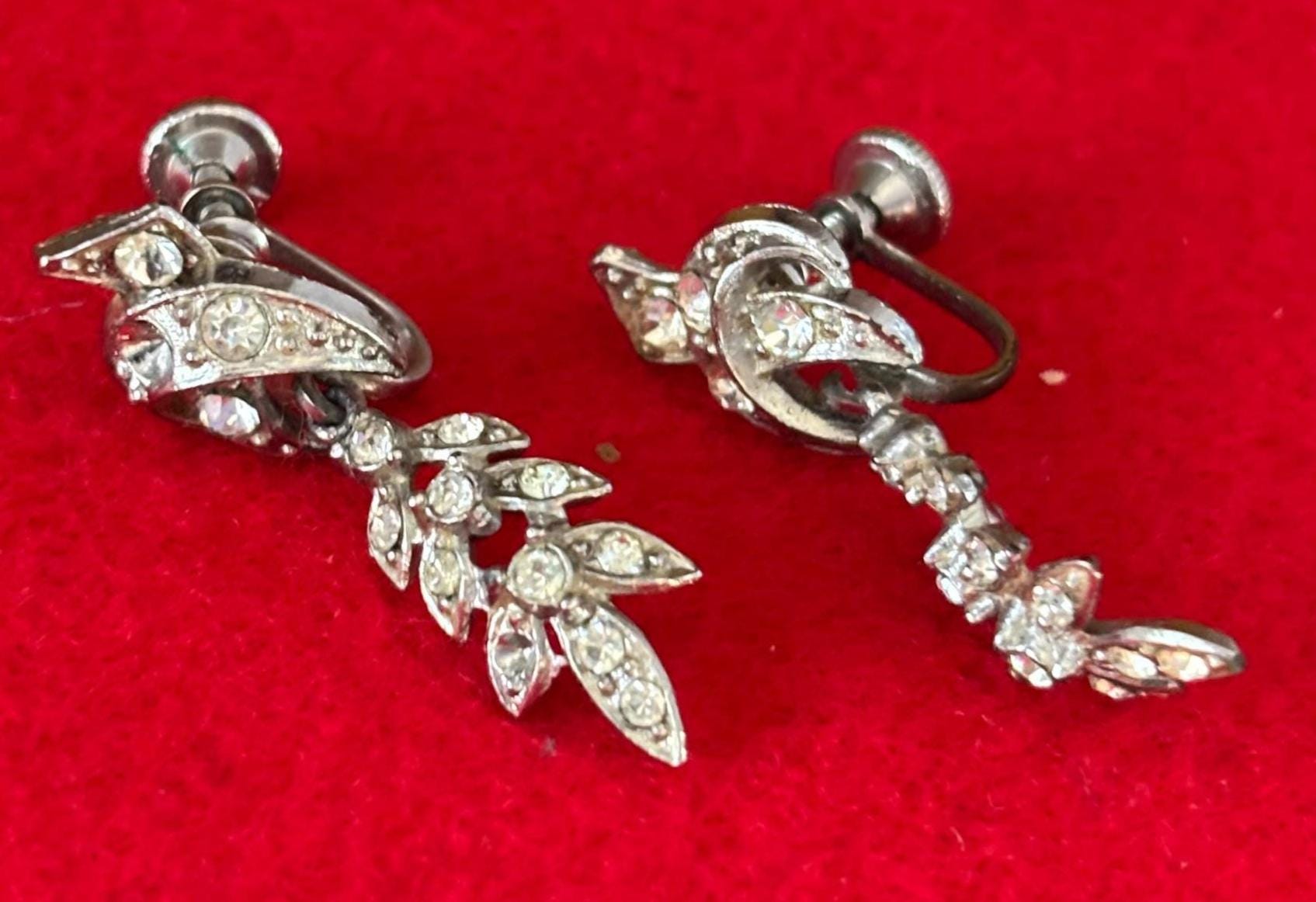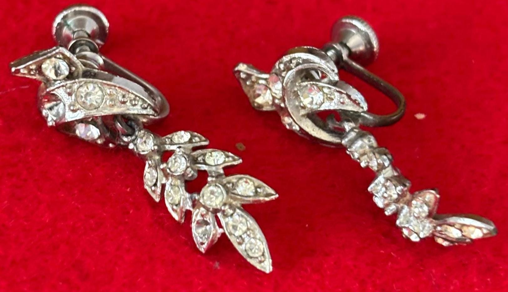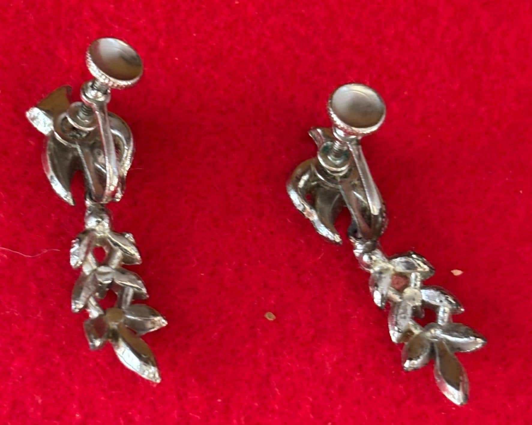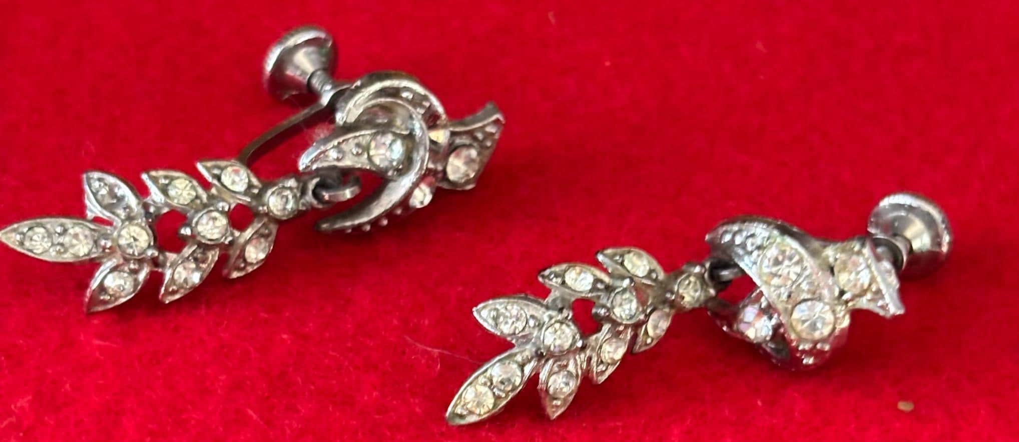 We have a lovely Vintage Rhinestone Dangle Silver Bird and Leaf Earrings.