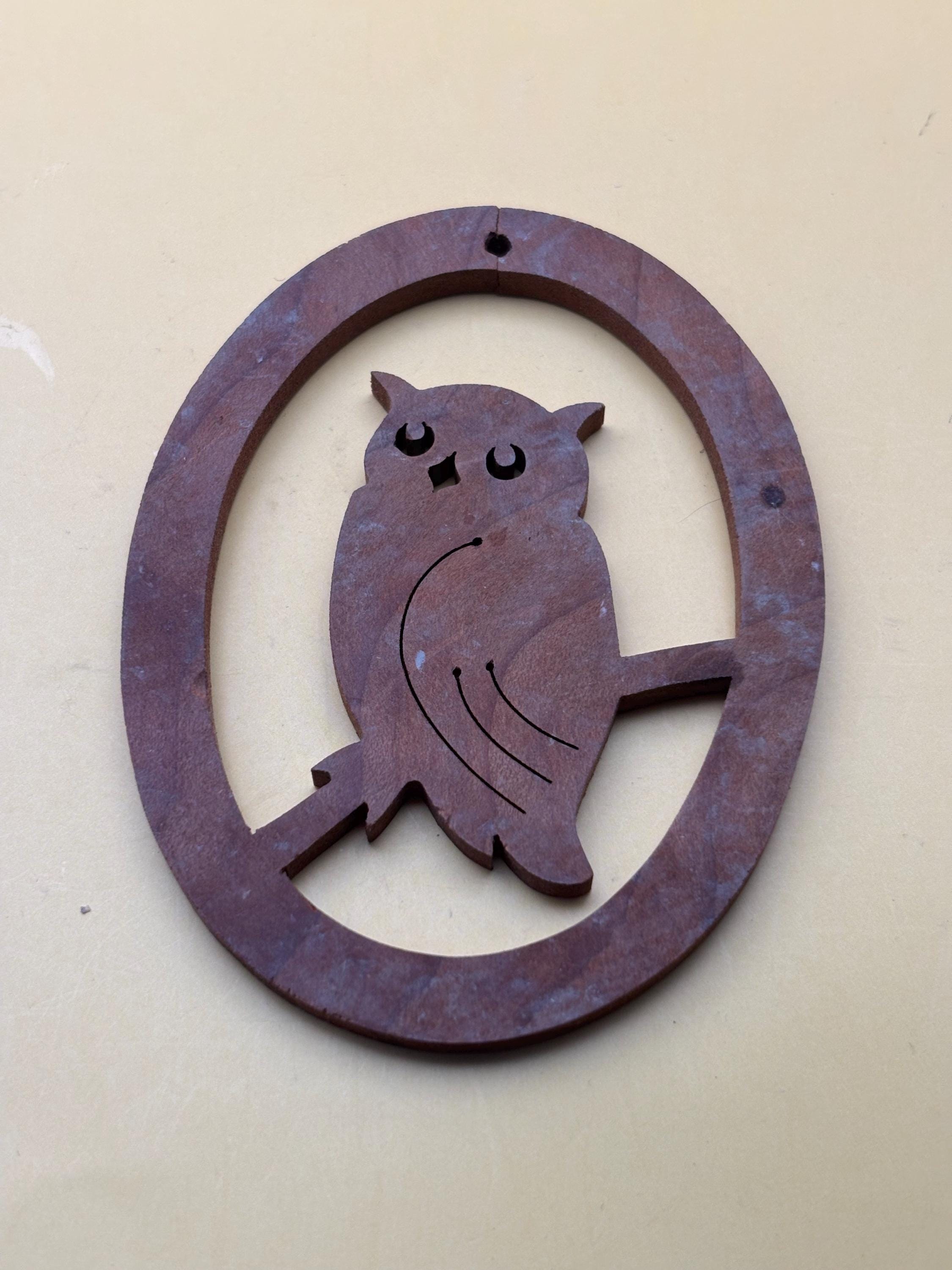 The Vintage Laser Cut Wooden Owl's sturdy hardwood material and handcrafted design make it a timeless collectible for lovers of vintage crafts and rustic wildlife decorations. Its minimal wear and excellent condition enhance the authenticity and appeal, making it an ideal gift for owl enthusiasts or those seeking unique, artistic wall accents to complement farmhouse or vintage interiors.