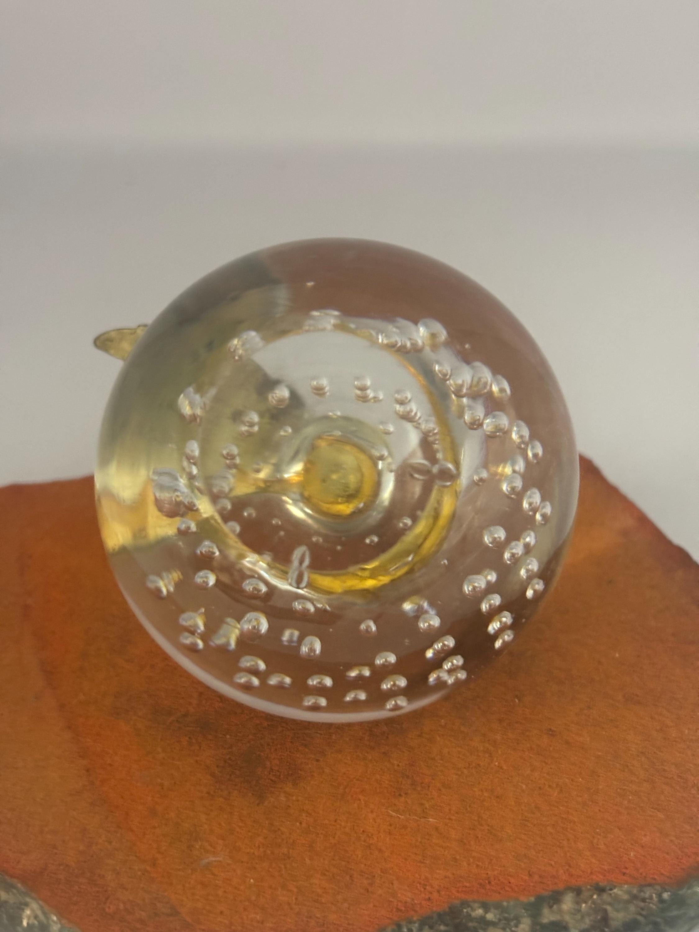 Perfect for display on desks, shelves, or curio cabinets, the SILVESTRI Clear Glass Bullicante Apple Paperweight is both a conversation piece and a functional object. Its artisanal quality and classic appeal make it suitable for lovers of antique decor and art glass alike. Add a touch of timeless charm to your home or gift it to an antique glass enthusiast.