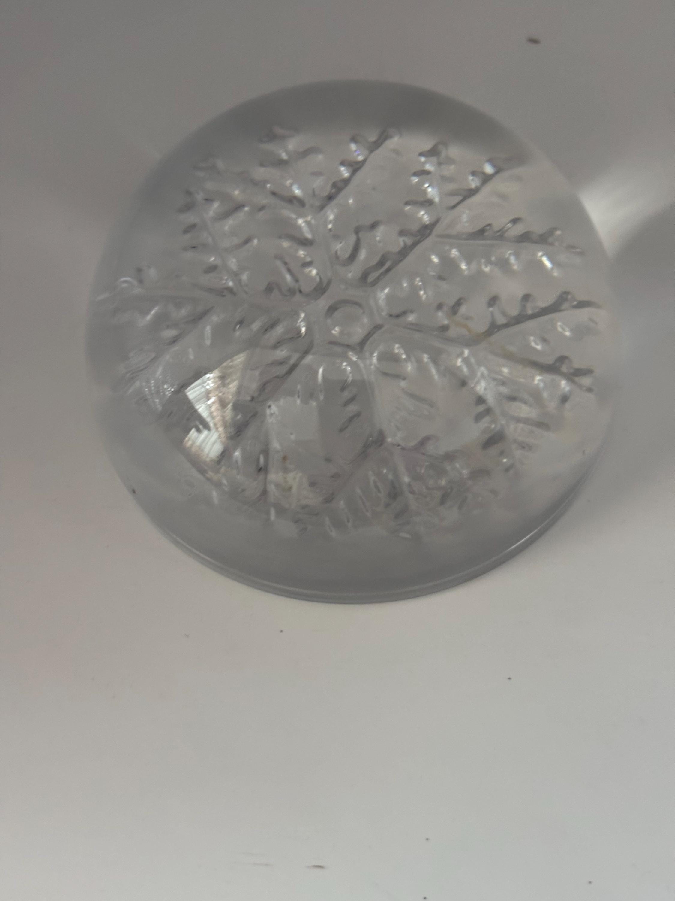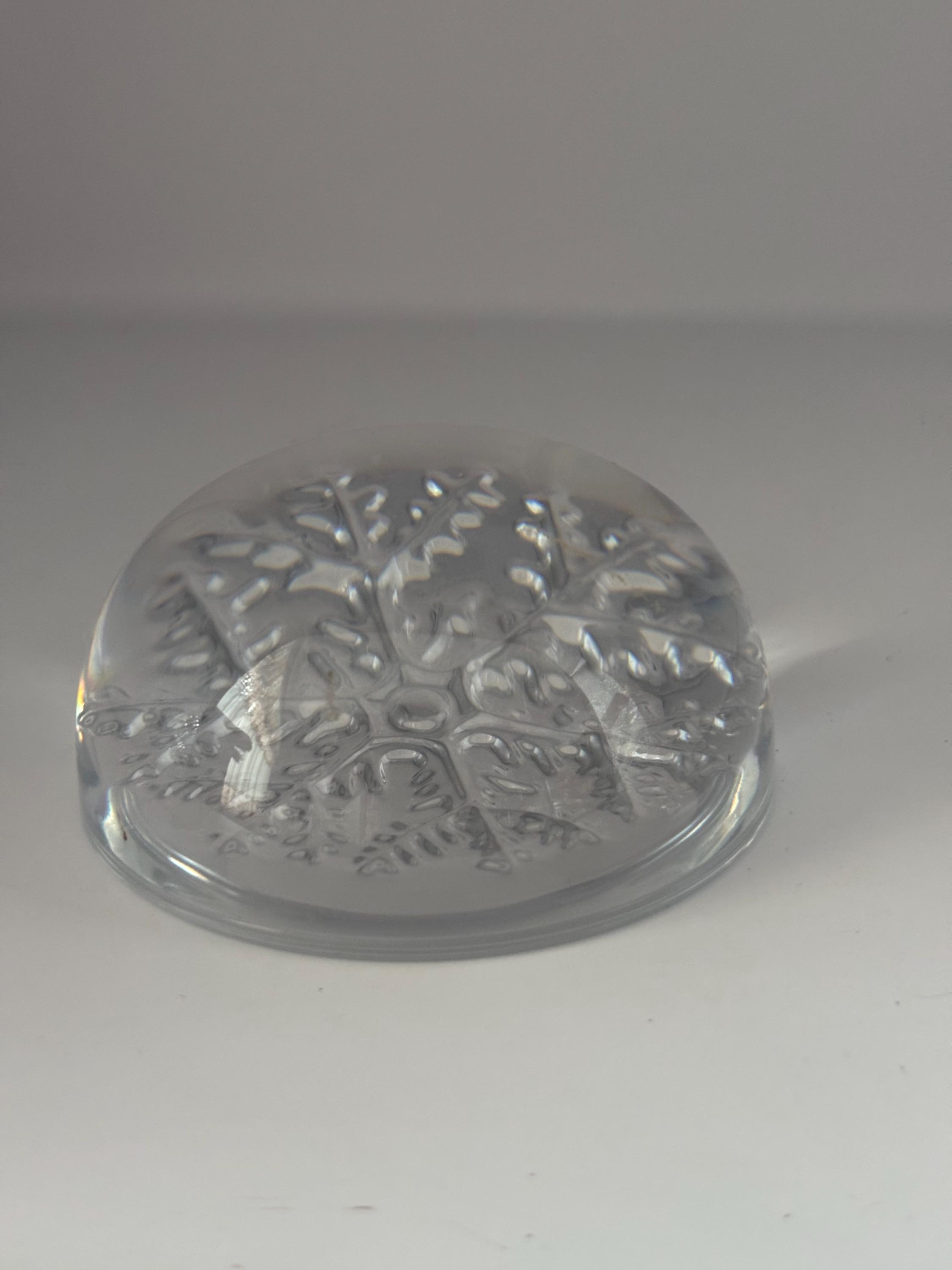 This Cristal France Snowflake Paperweight is a stunning example of genuine 24% lead crystal artistry. Crafted with exceptional clarity, this vintage paperweight features an intricate snowflake design encased in a smooth, round form. Perfect for collectors and lovers of fine crystal, it makes a beautiful decorative accent or functional desktop accessory.