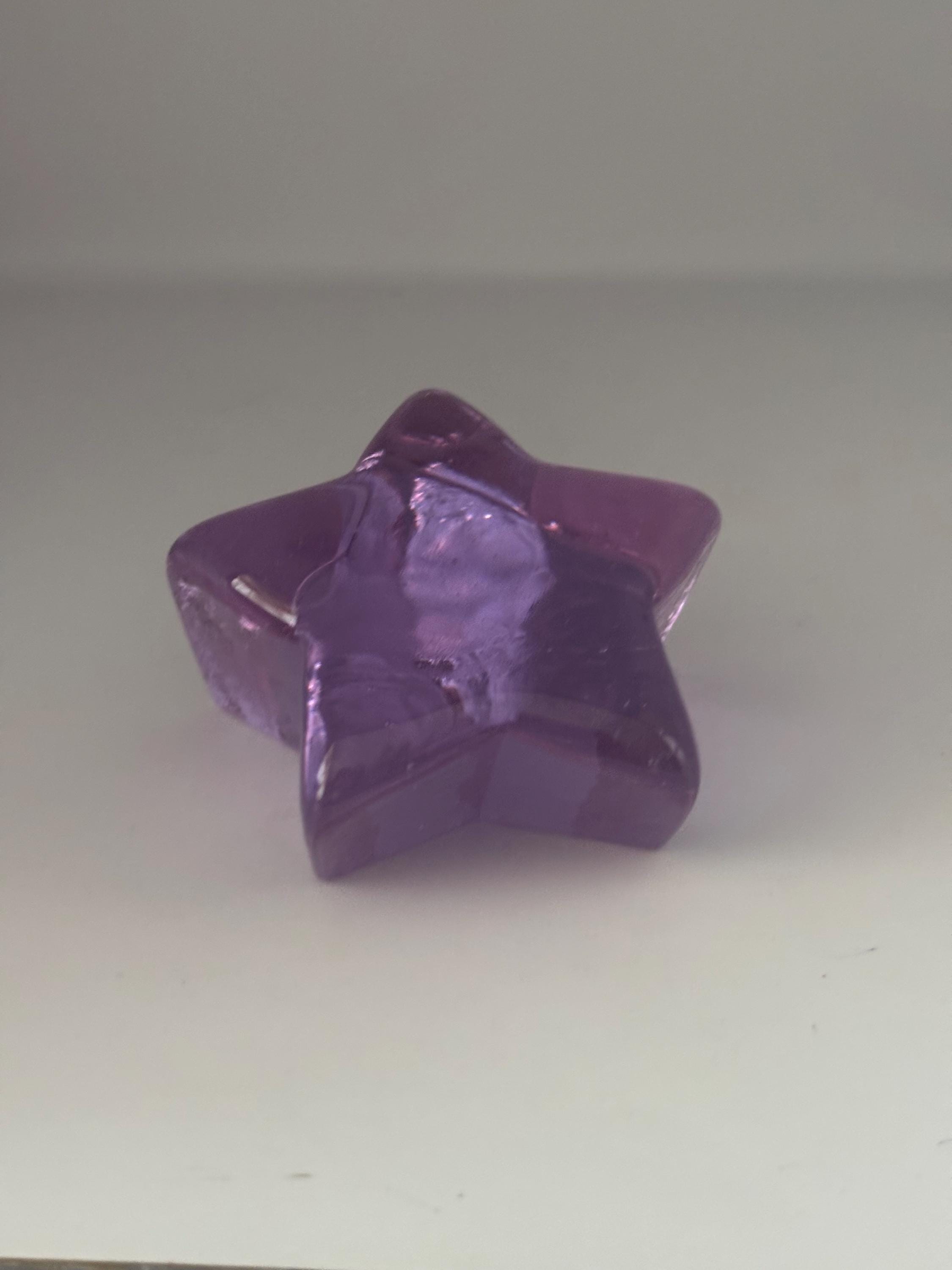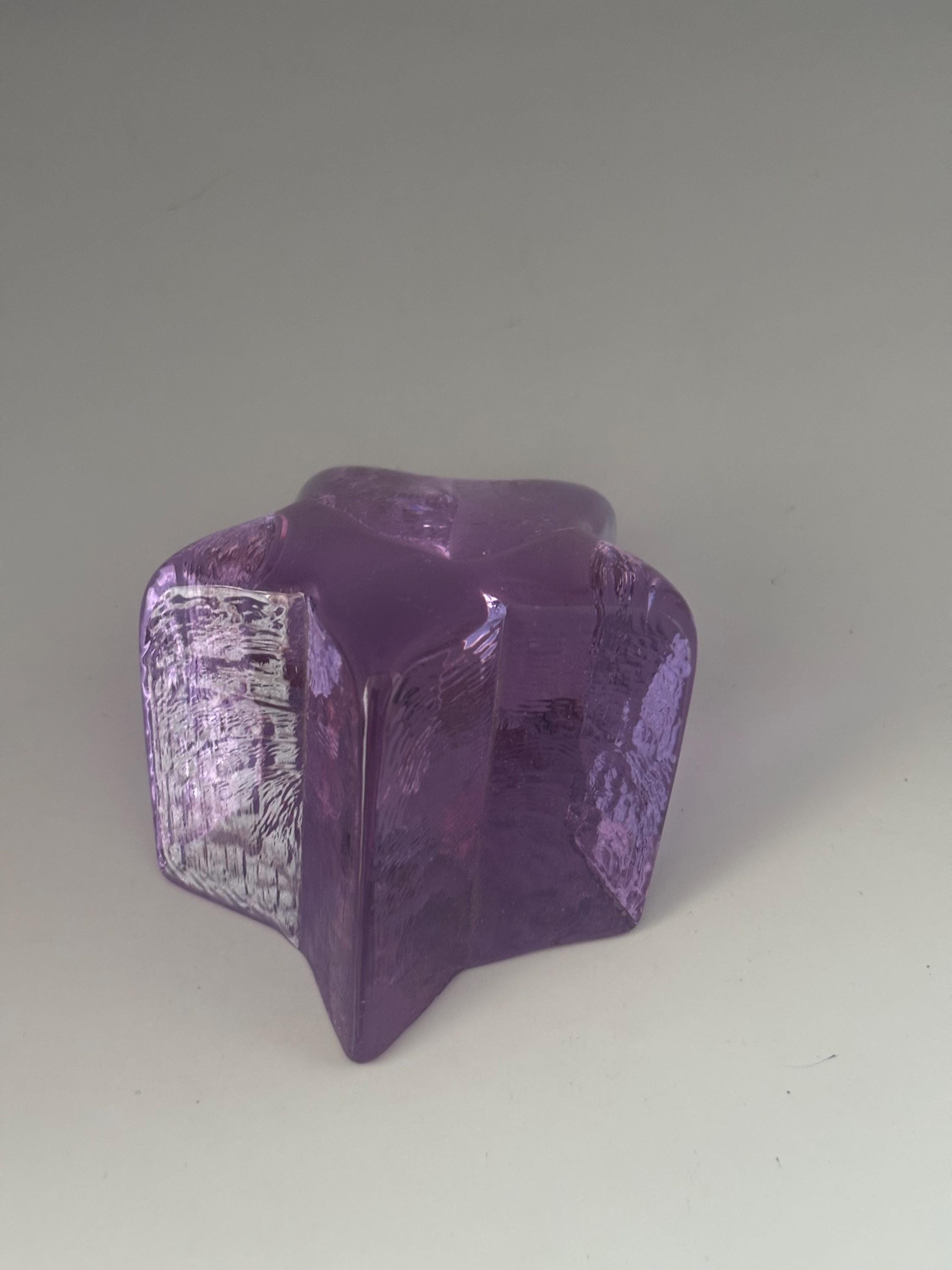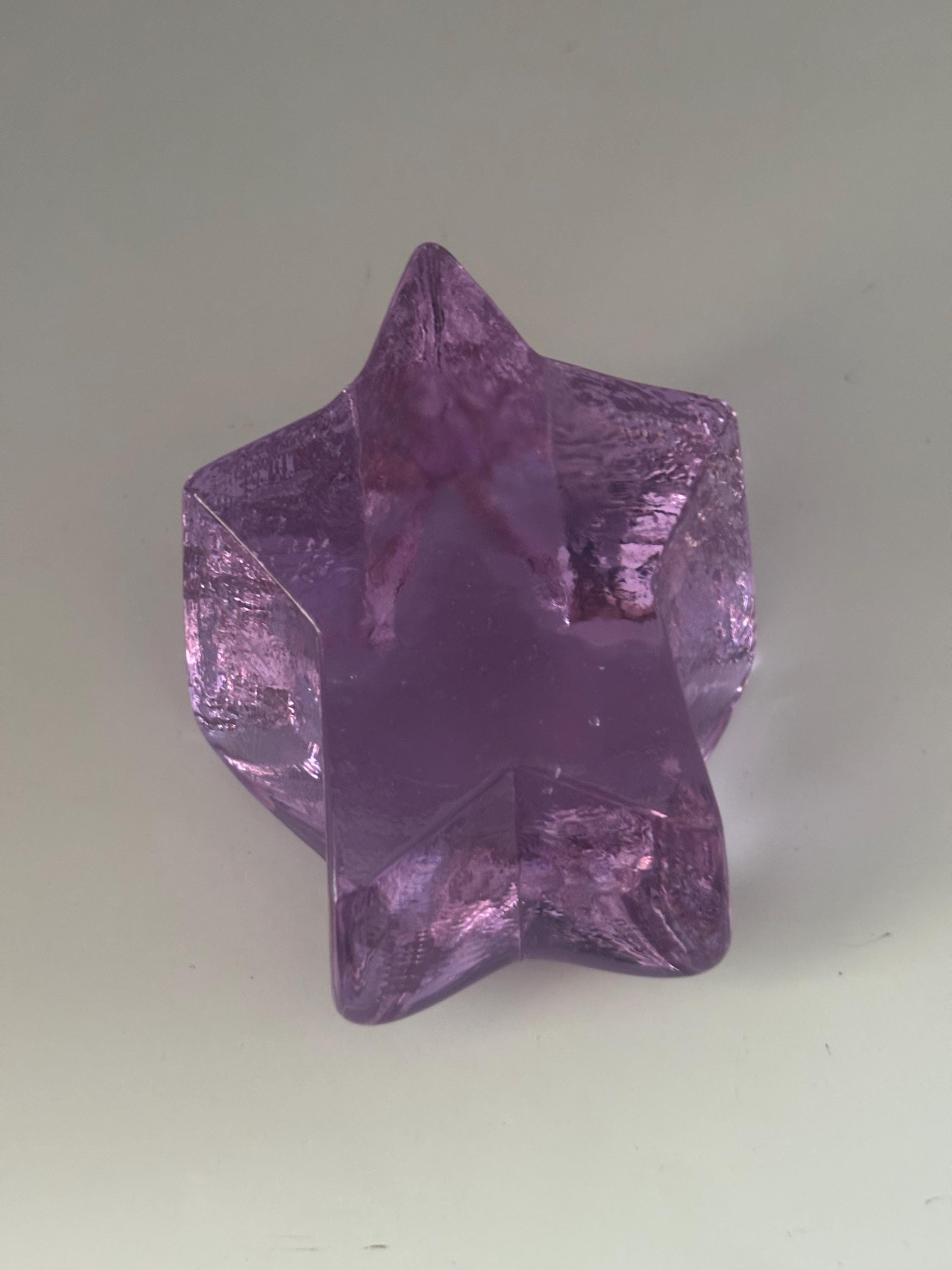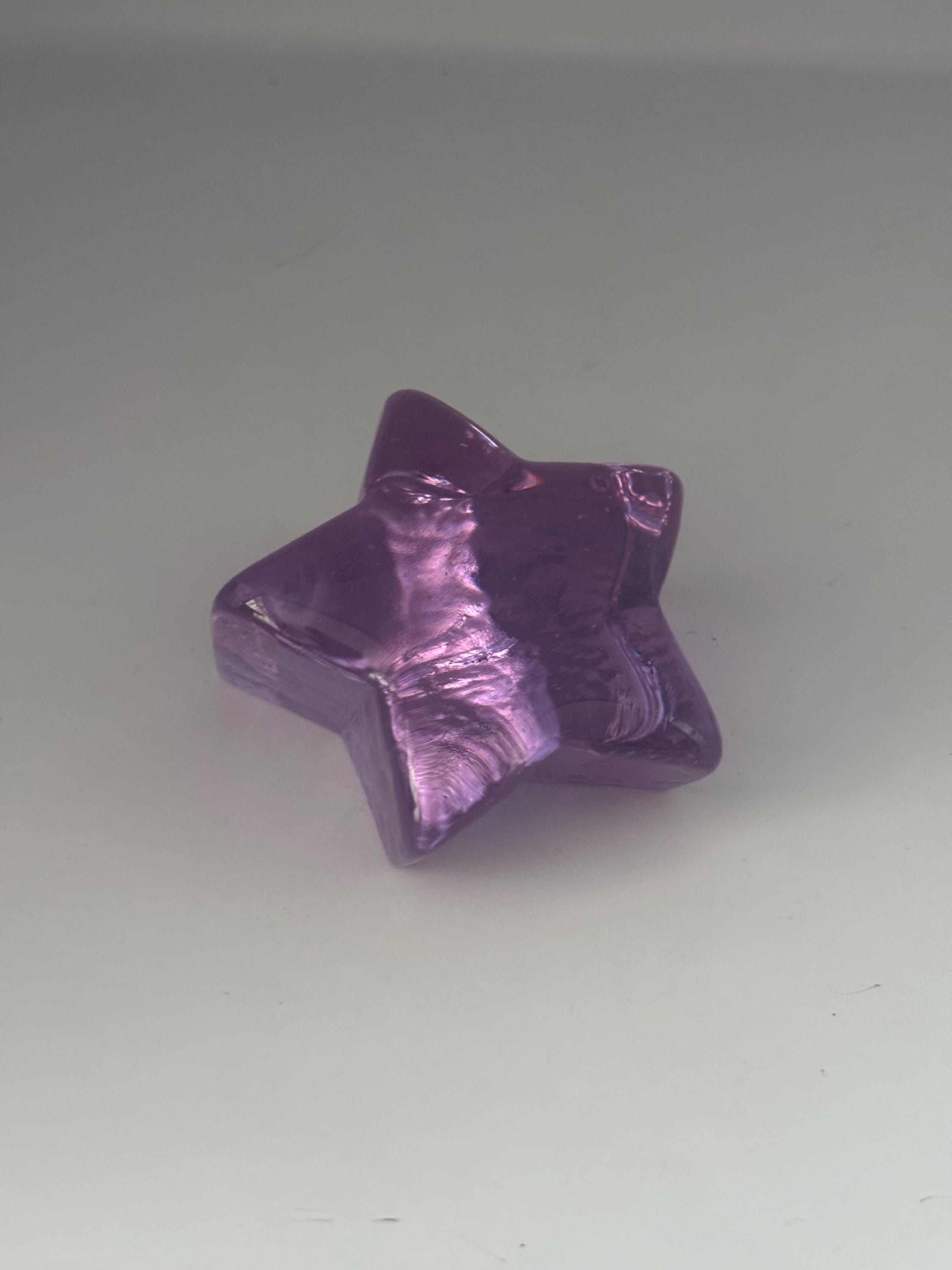 This stunning FIRE AND LIGHT RECYCLED GLASS LAVENDER NEODYMIUM ALEXANDRITE STAR PAPERWEIGHT, a beautifully crafted piece showcasing rich lavender hues with a subtle color-changing neodymium alexandrite effect. This star-shaped paperweight is made from high-quality recycled glass, making it an eco-friendly and elegant addition to any desk or collection. Its smooth, shimmering surface captures light and adds a touch of magic to your workspace or display.