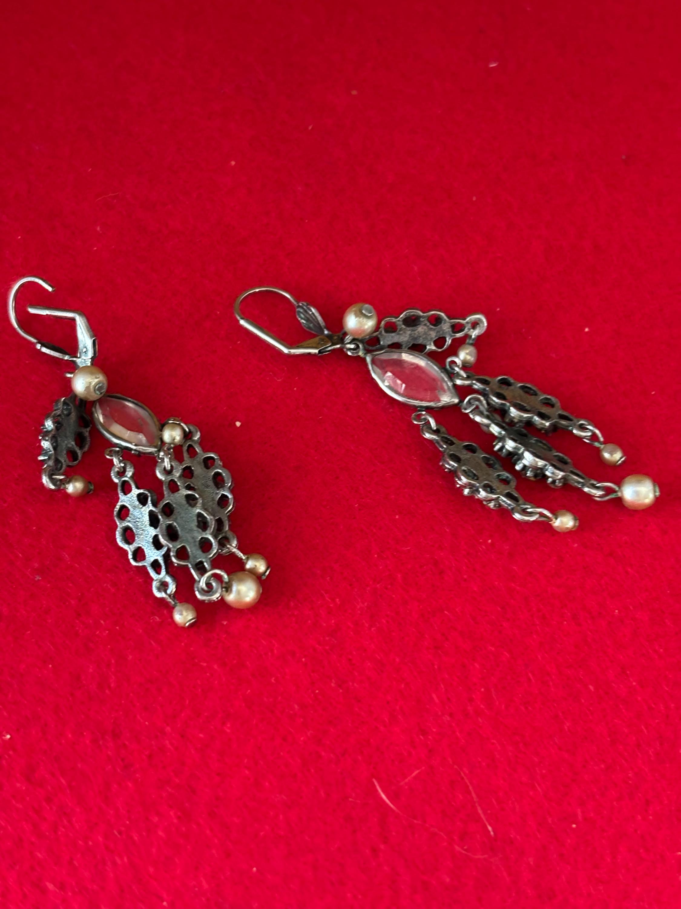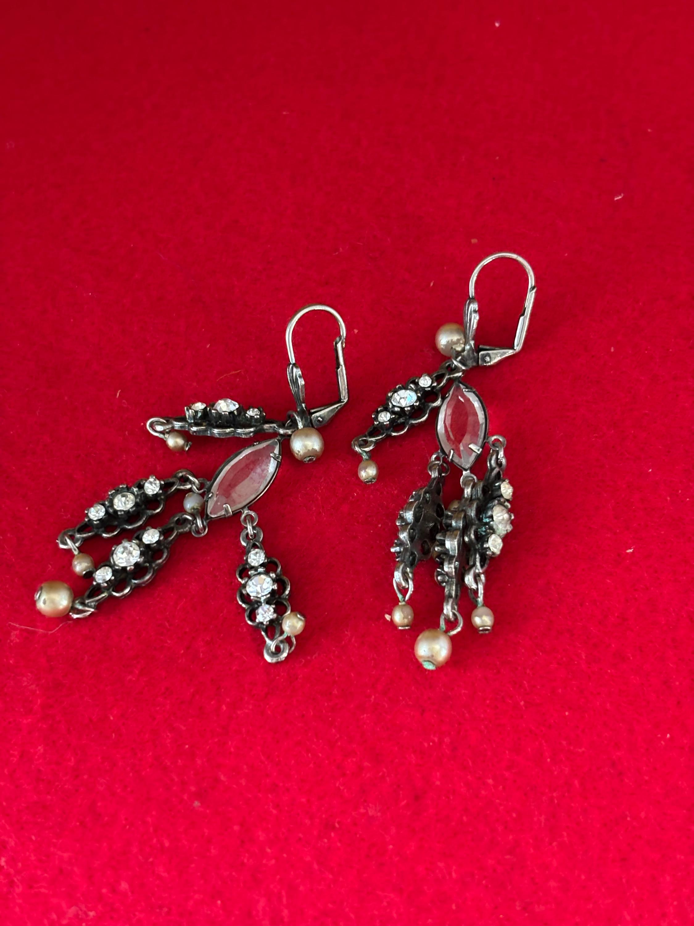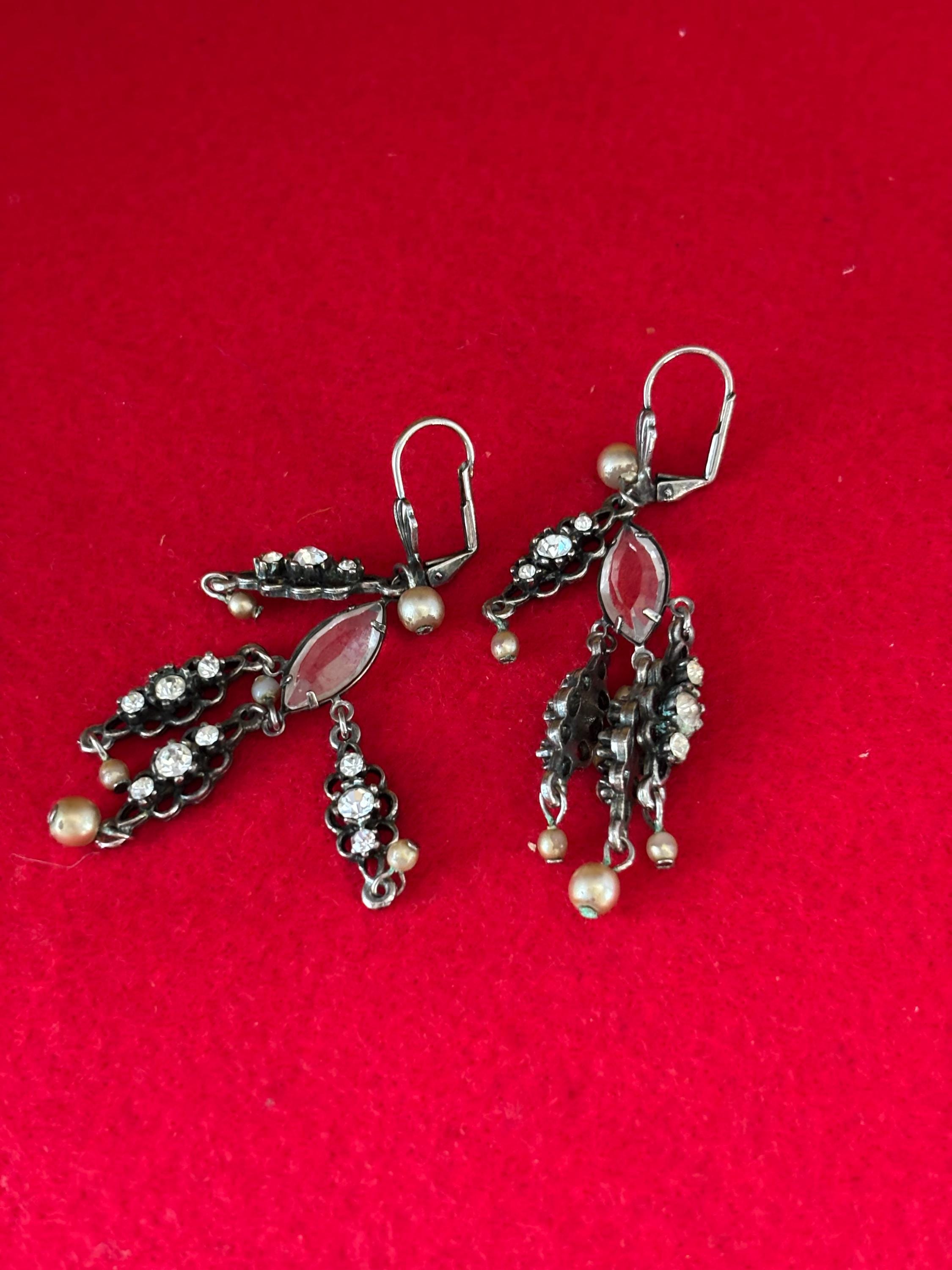 Crafted with attention to detail, these earrings offer a unique vintage charm with a graceful dangling silhouette. Ideal for special occasions or everyday glamour, the Vintage Crystal Rhinestones and Pearls Chandelier Earrings exude sophistication and classic style. Add these beautiful earrings to your collection for a versatile, standout accessory.