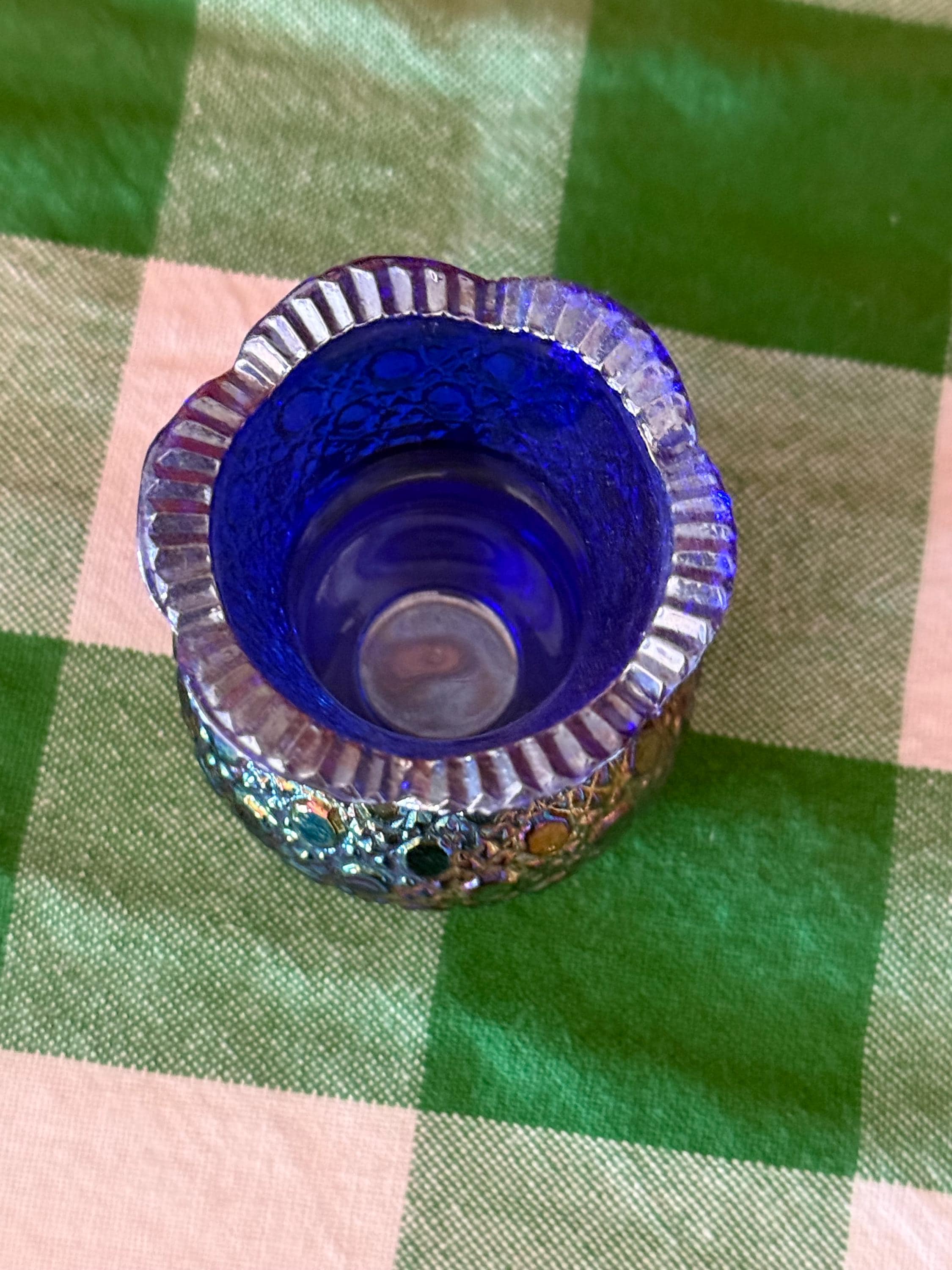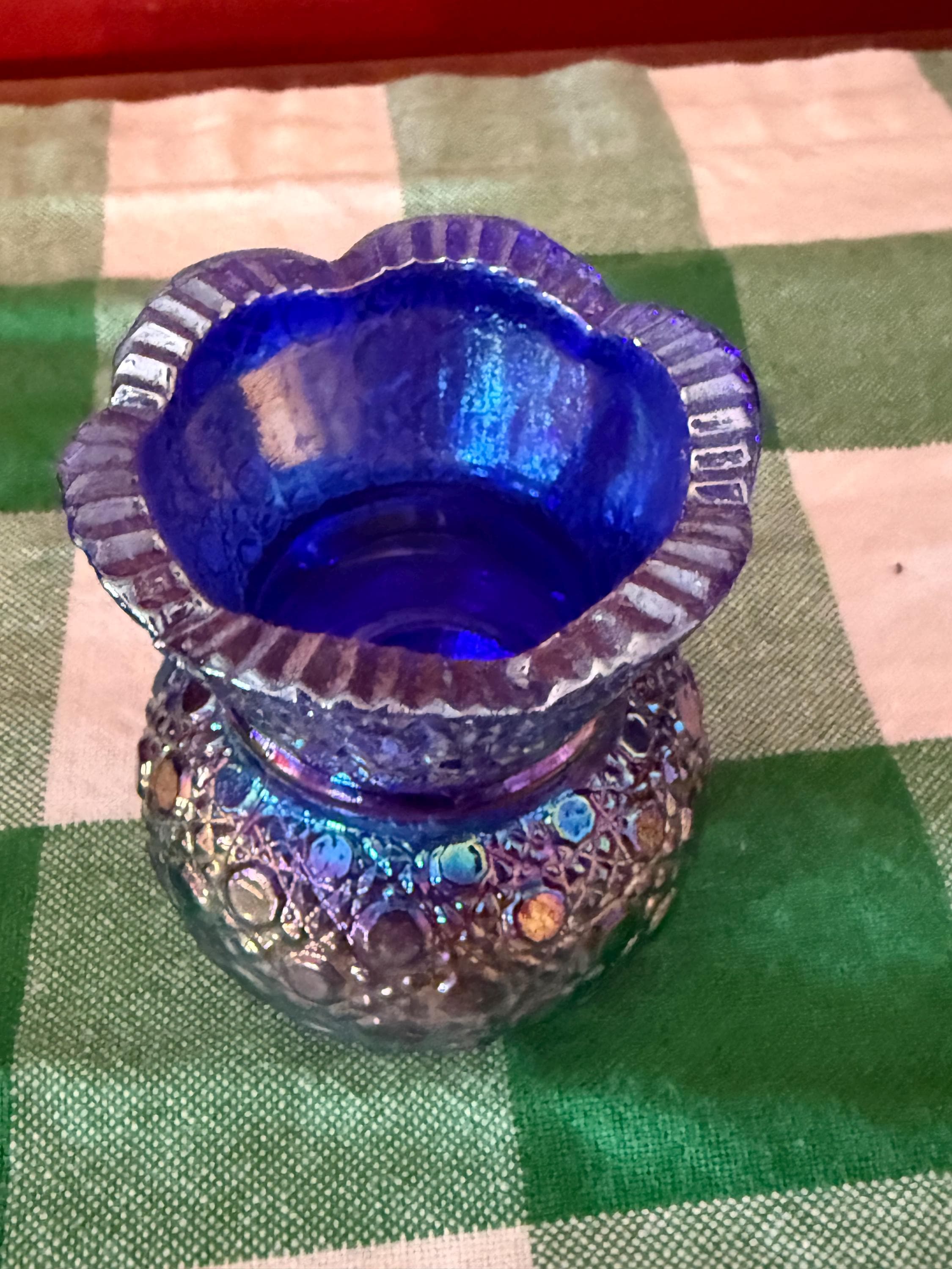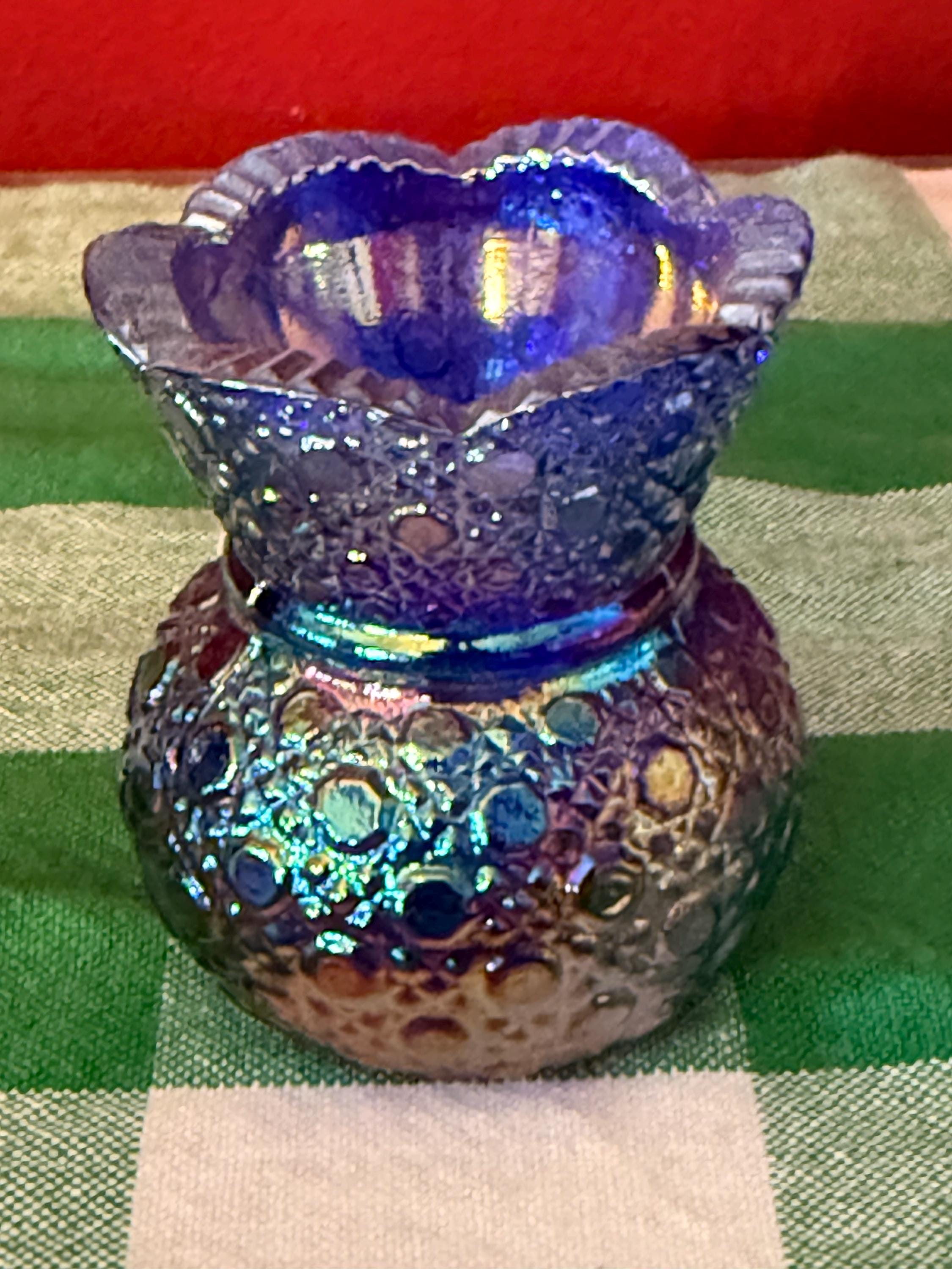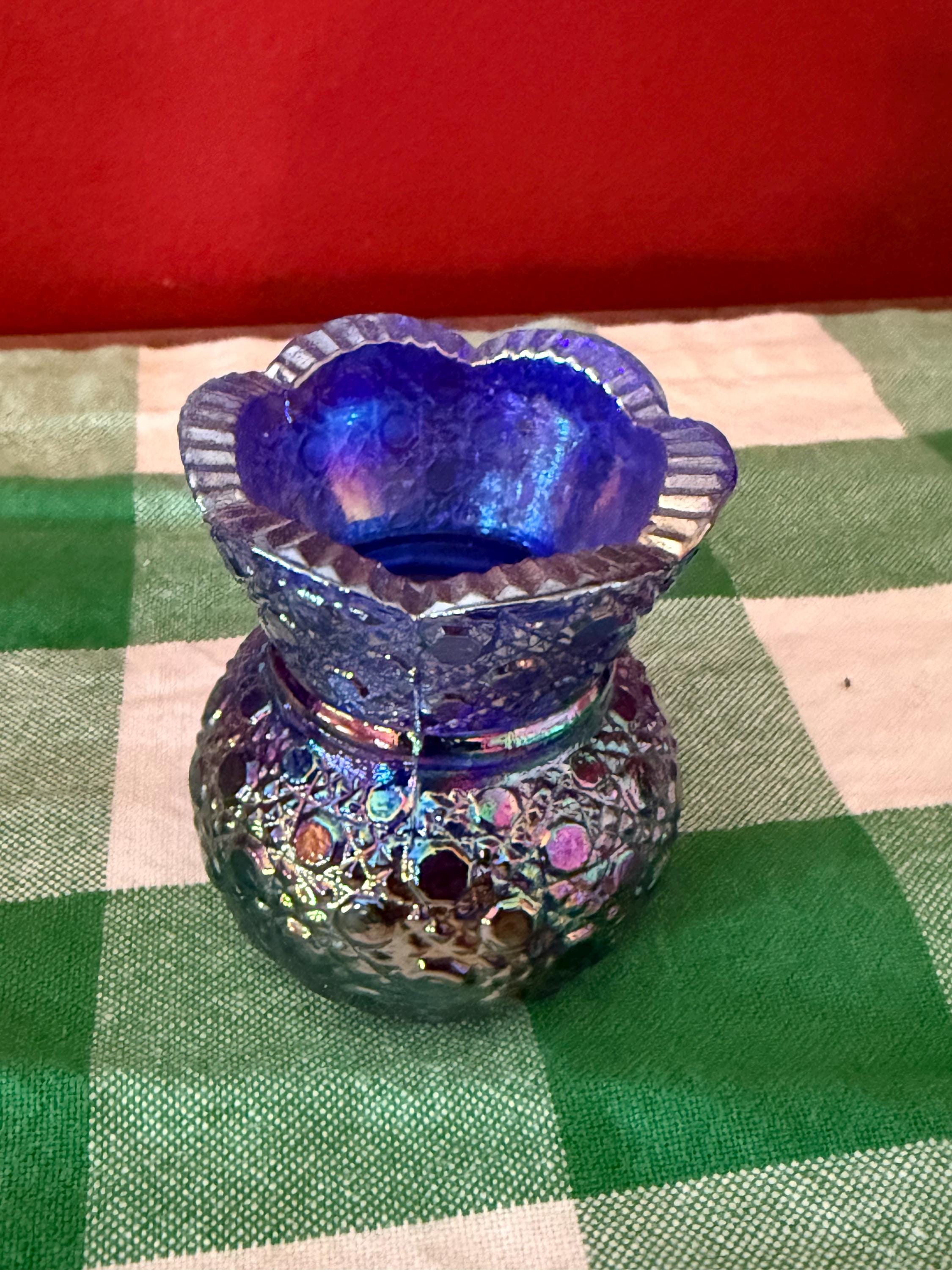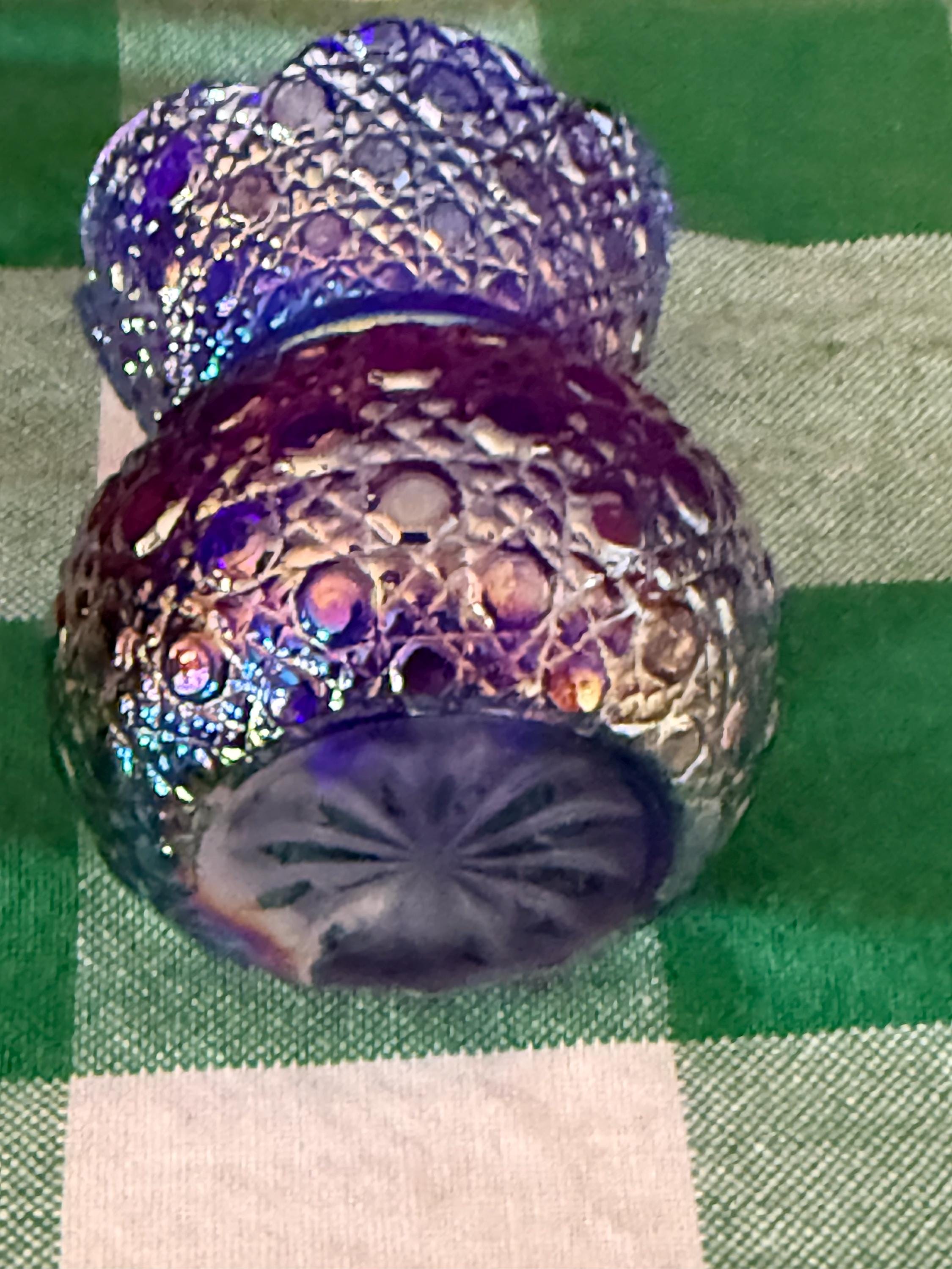 We have a gorgeous Vintage Mini Iridescent Purple Vase. It is stunning!