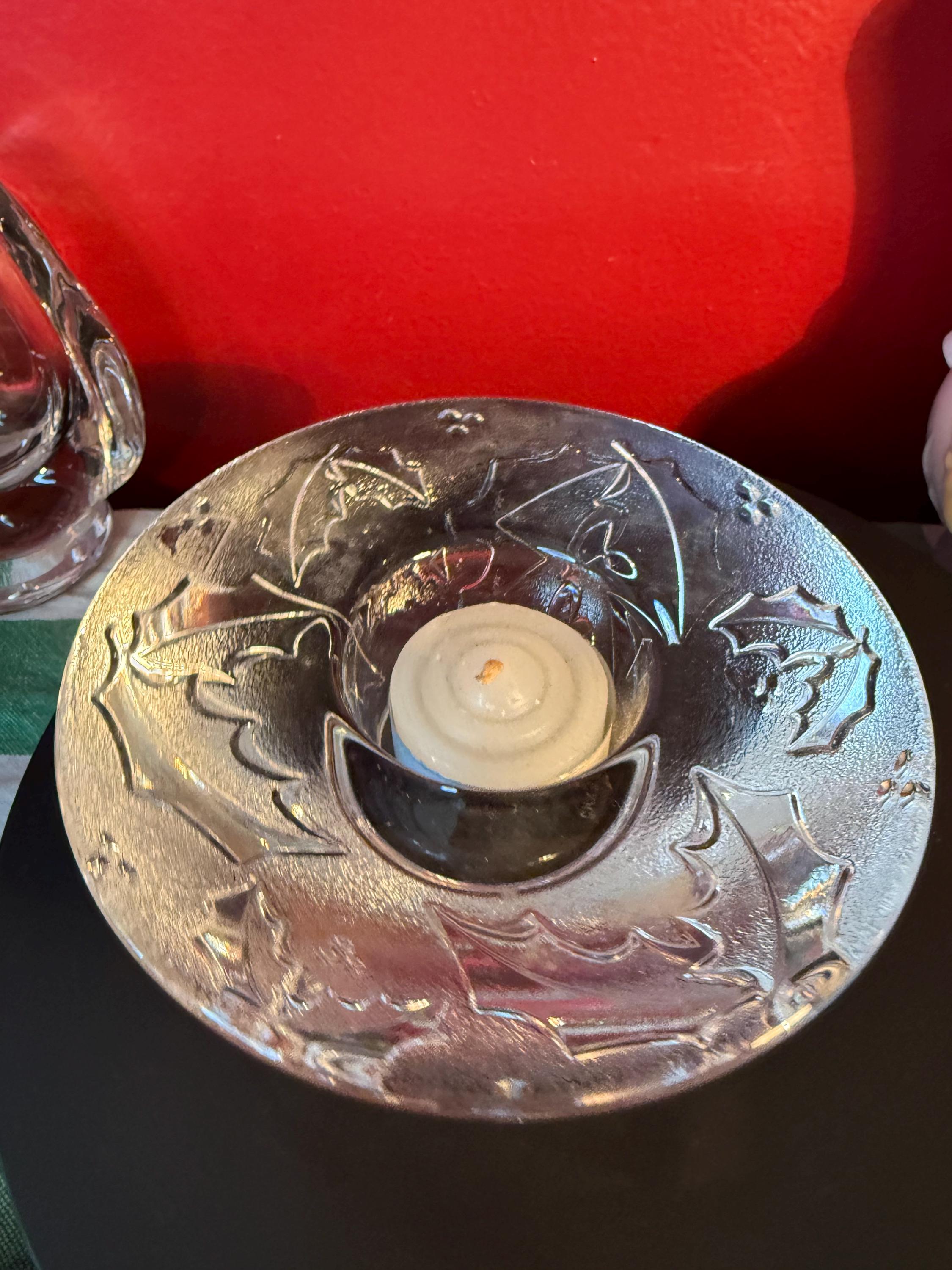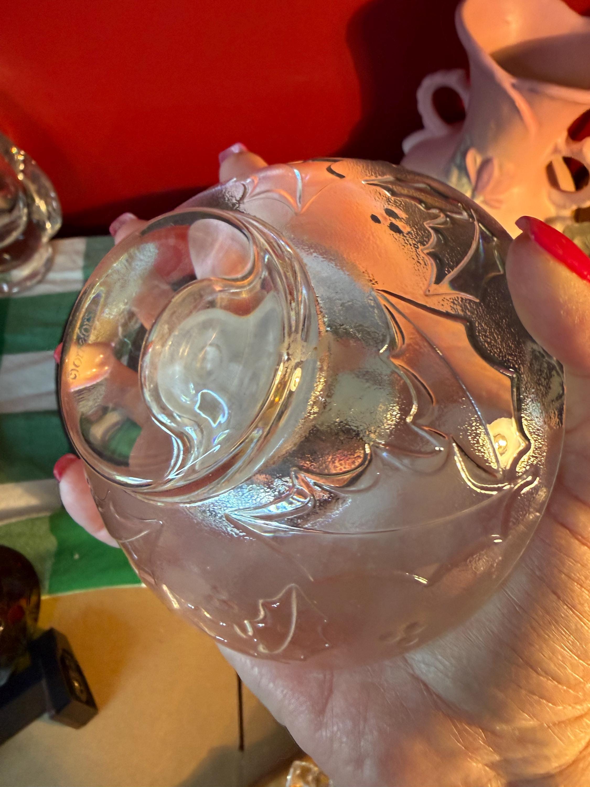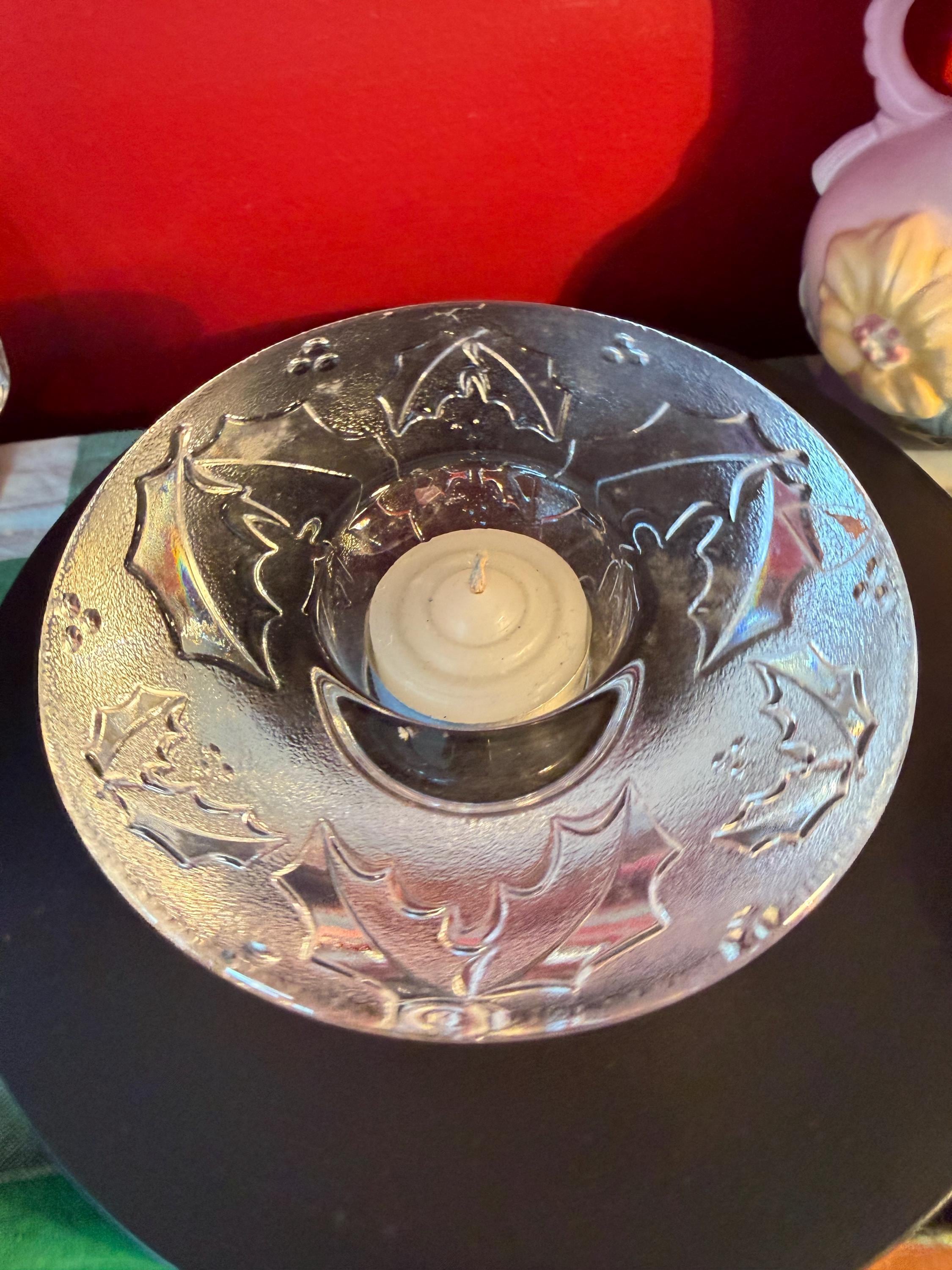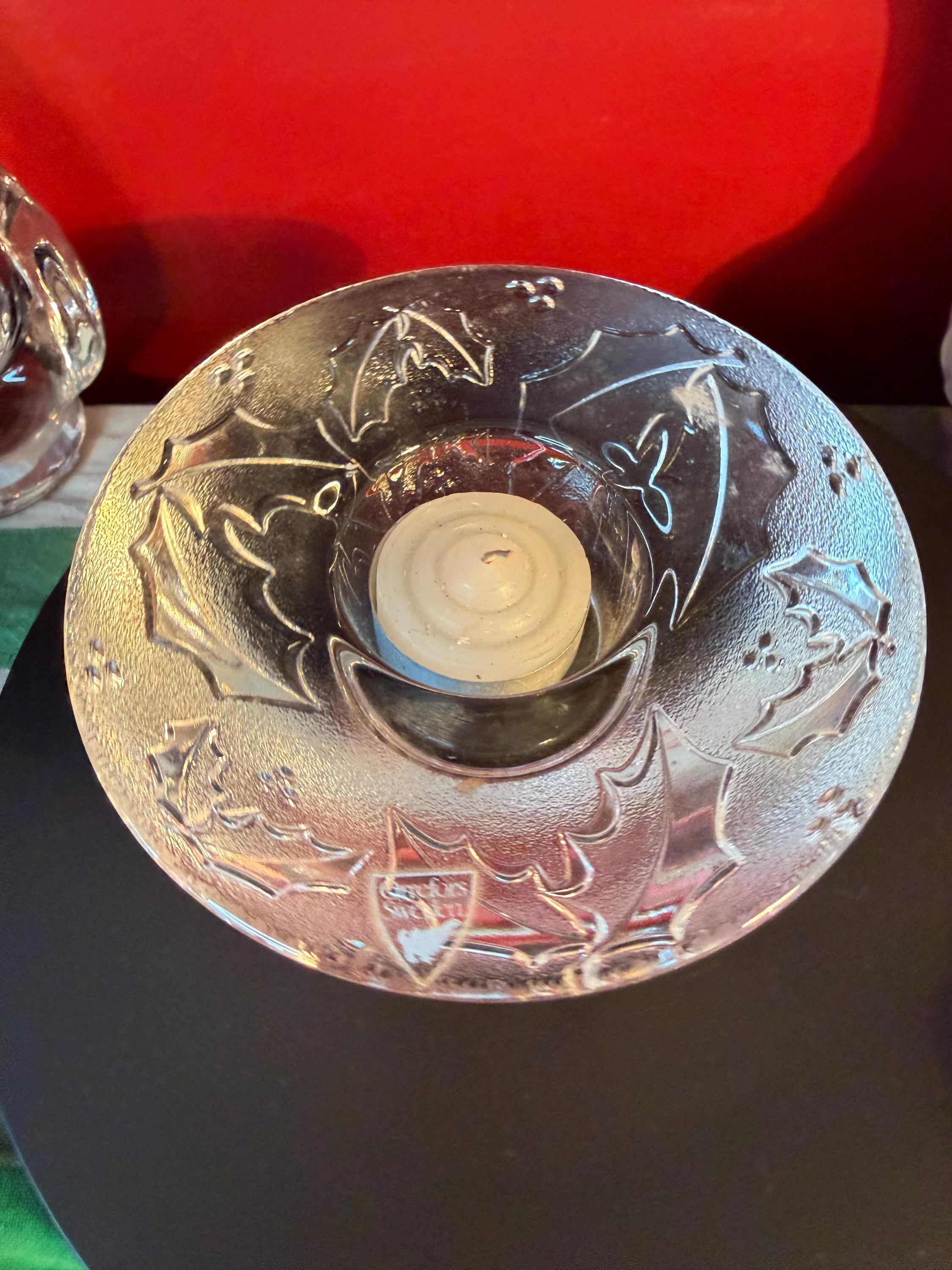 This Vintage Glass Votive Candle Holder is a charming accent piece measuring 5 inches wide and 2 inches high. Crafted from clear glass with a textured, embossed design around the rim, it adds subtle elegance to any tabletop or mantel. Perfect for votive or tealight candles, this holder beautifully reflects candlelight through its delicately patterned glass.