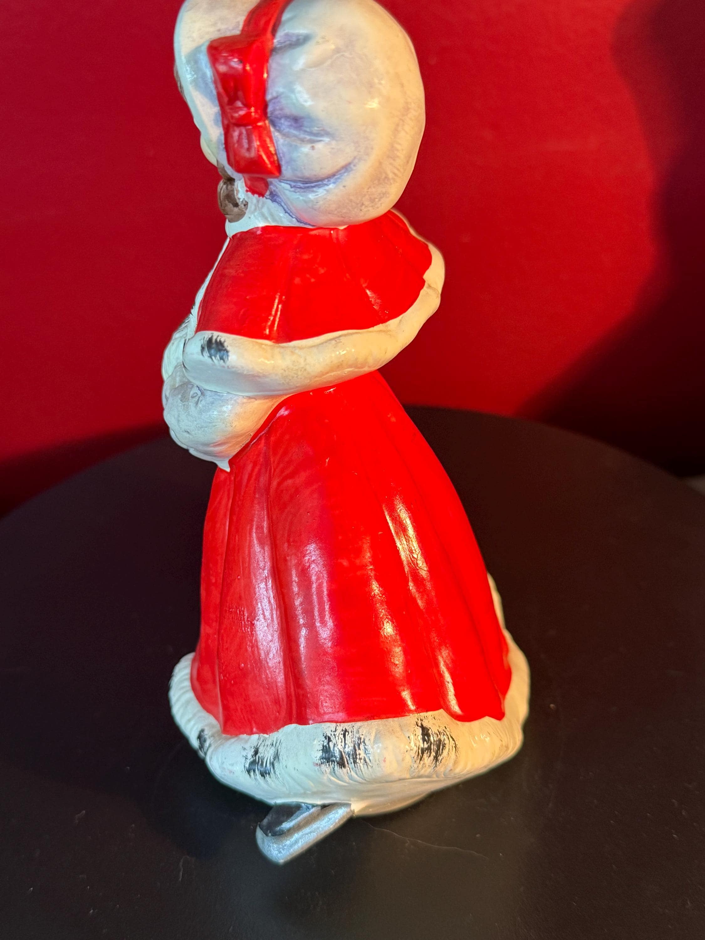 Perfect for collectors and holiday enthusiasts alike, the Christmas Caroler Woman figurine brings a touch of mid-century charm to your home. With its vibrant colors and classic design, it makes a thoughtful gift or centerpiece to elevate your Christmas décor year after year.