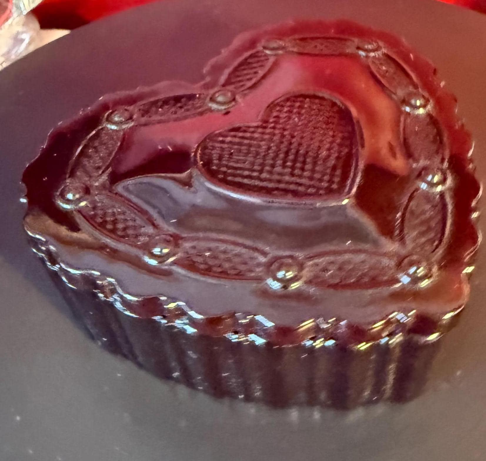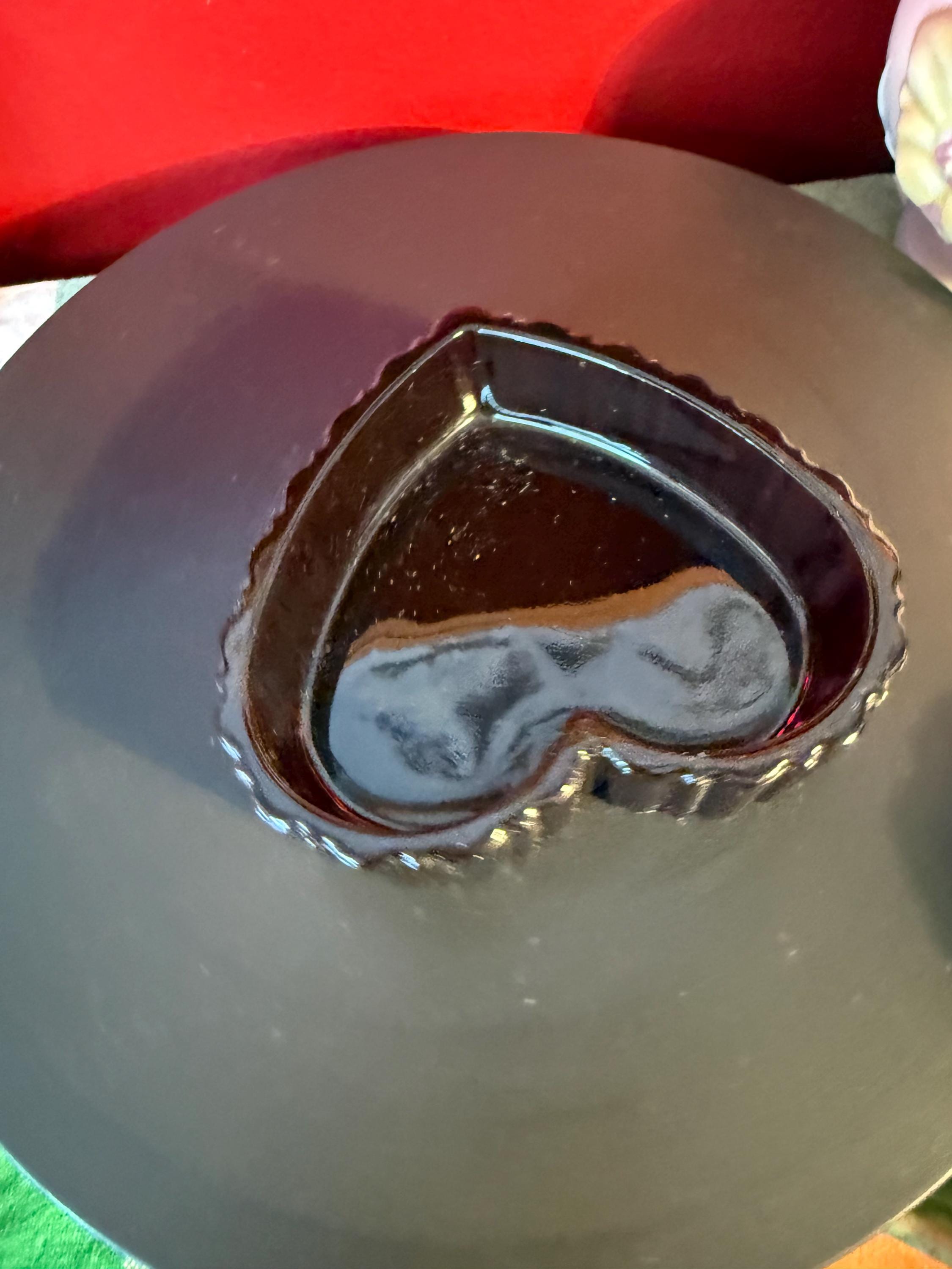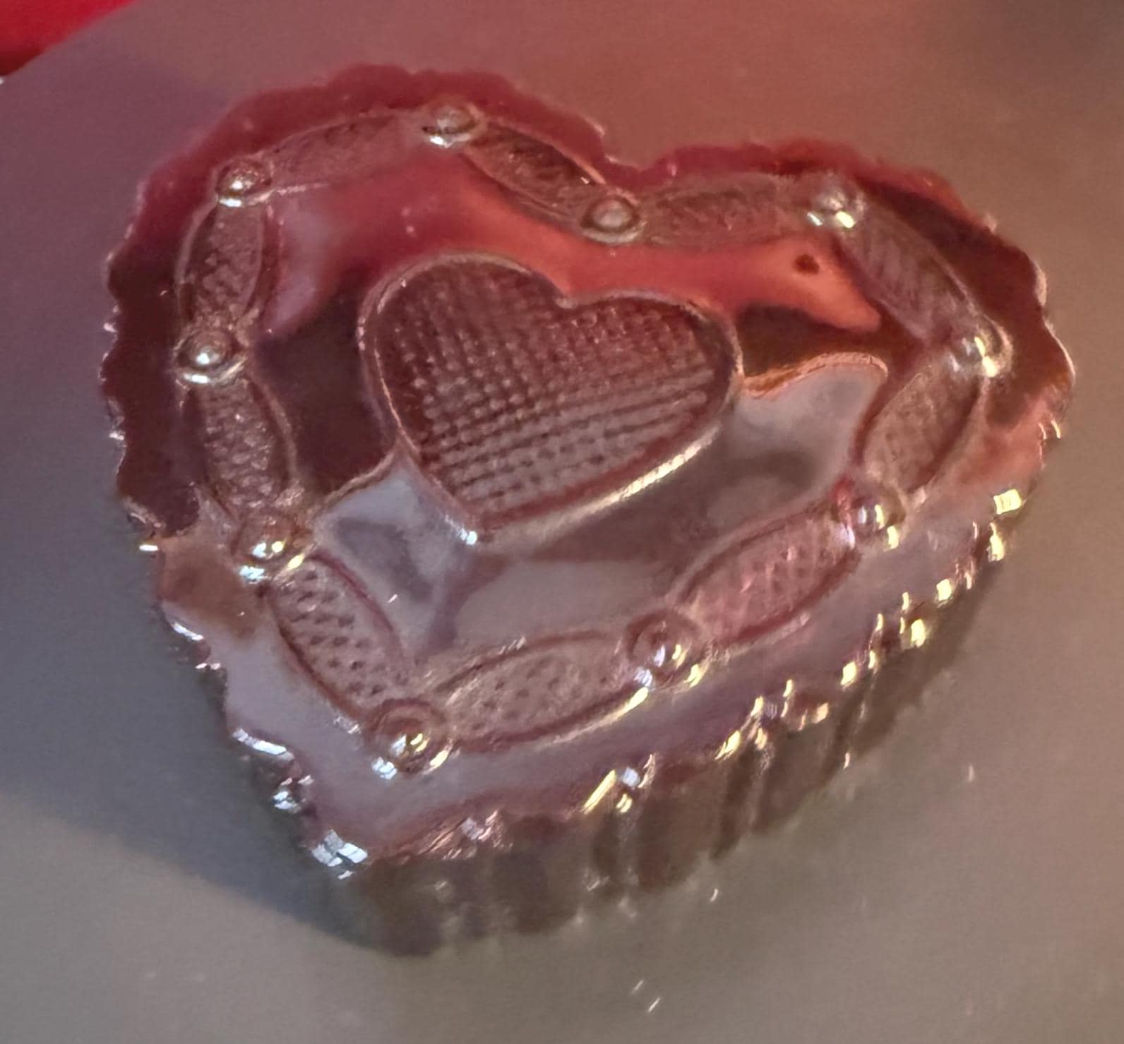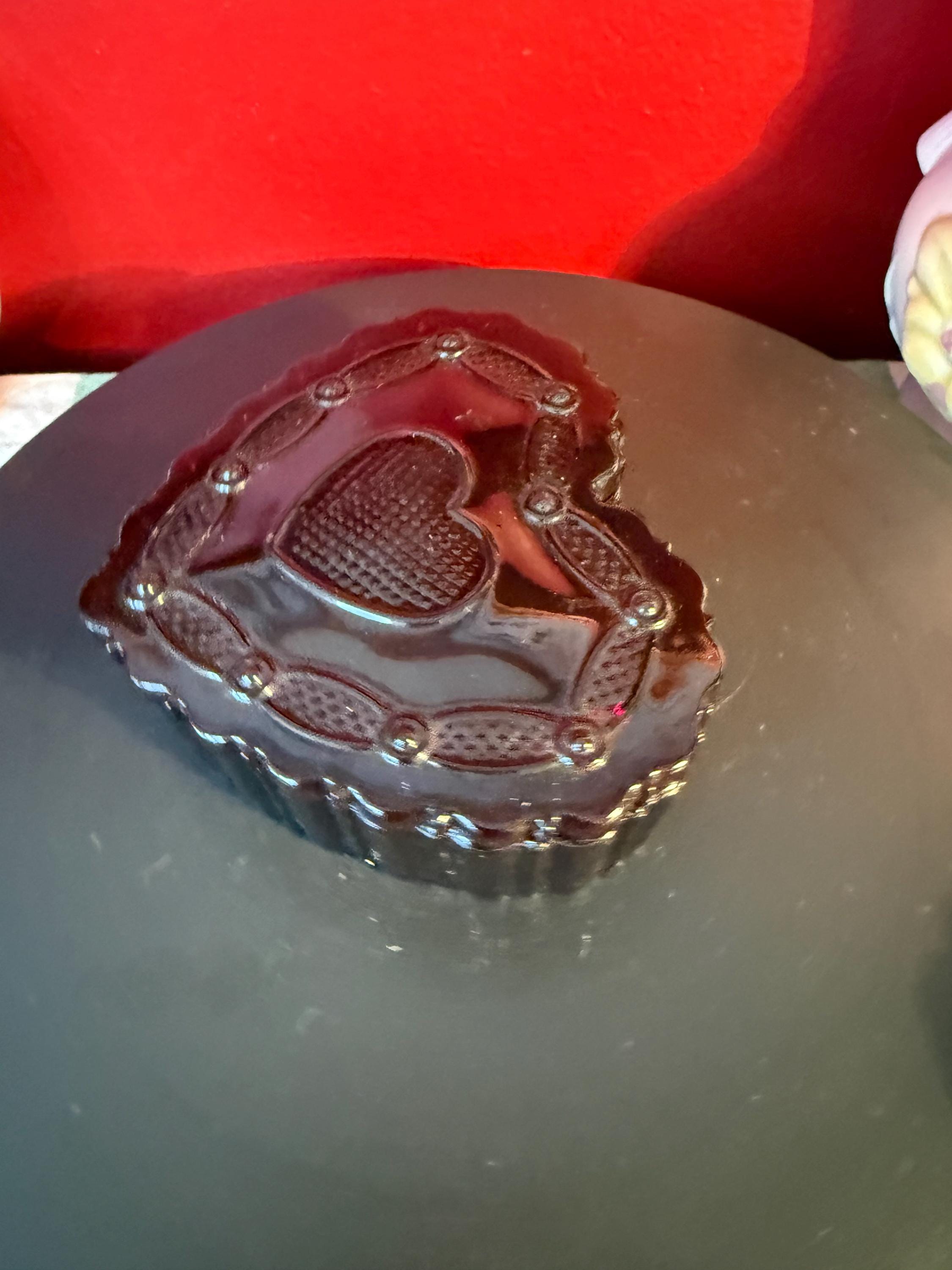 This Vintage Ruby Red Heart Trinket Box is a charming and elegant collectible that adds a touch of nostalgia to any space. Crafted from rich ruby red glass, this heart-shaped box features intricate embossed detailing on the lid, creating a beautiful textured pattern that catches the light effortlessly. Its compact size makes it perfect for storing small keepsakes, jewelry, or special mementos.