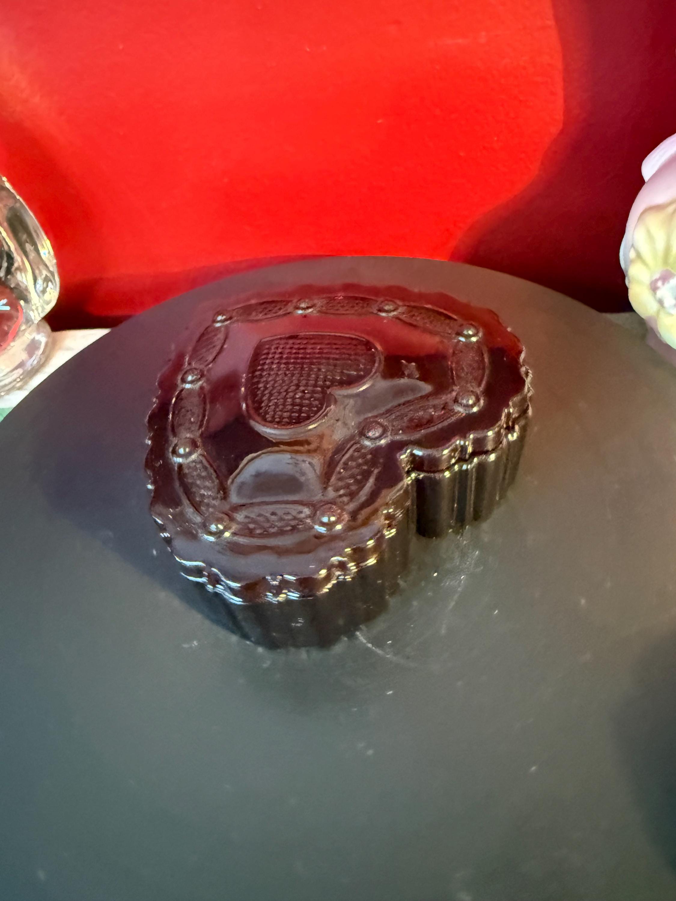Whether displayed on a vanity or shelf, the Ruby Red Heart Trinket Box serves as both a practical storage solution and a lovely decorative piece. Its classic design and vibrant color make it an ideal gift for collectors, vintage lovers, or anyone who appreciates unique ornamental boxes.