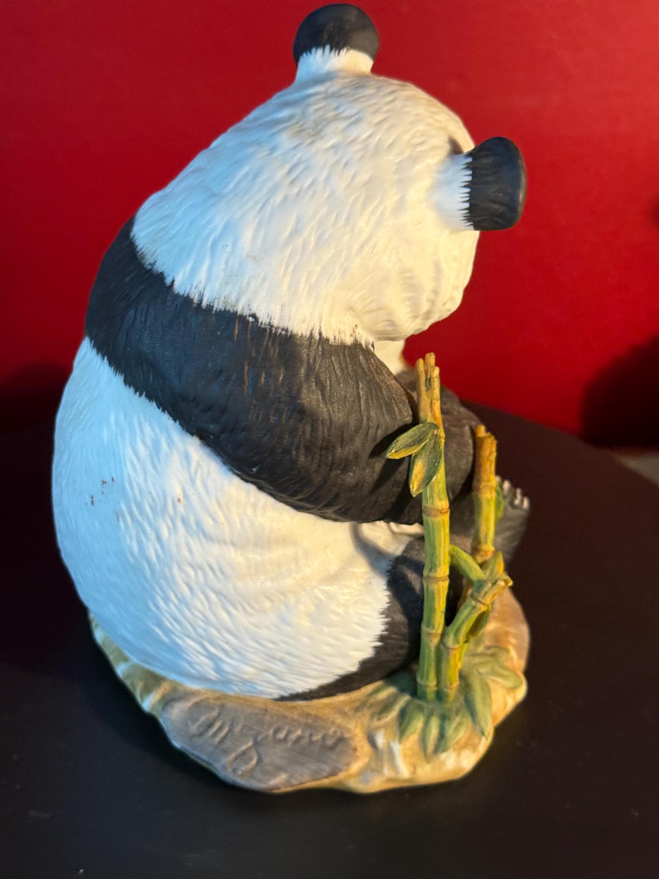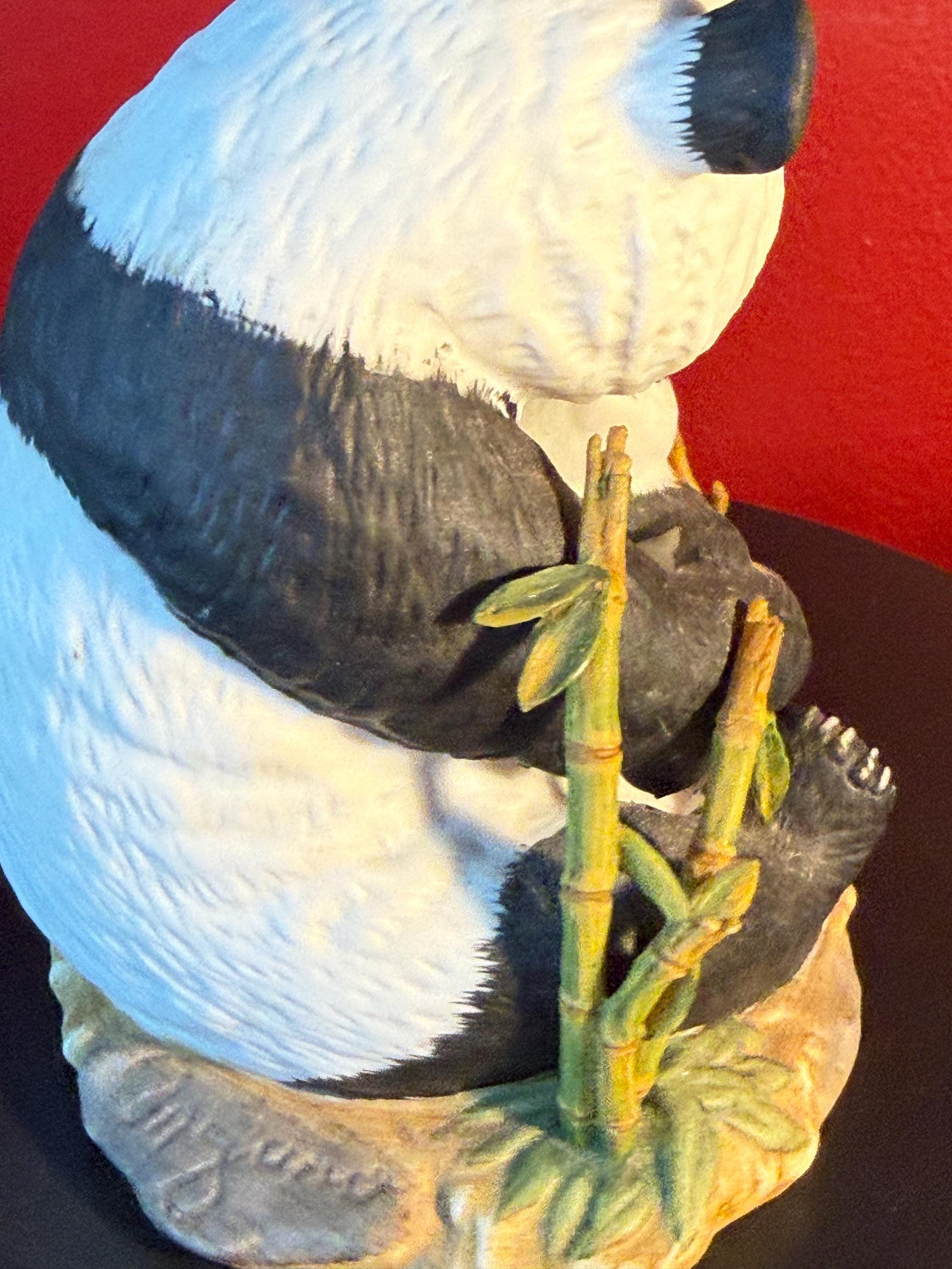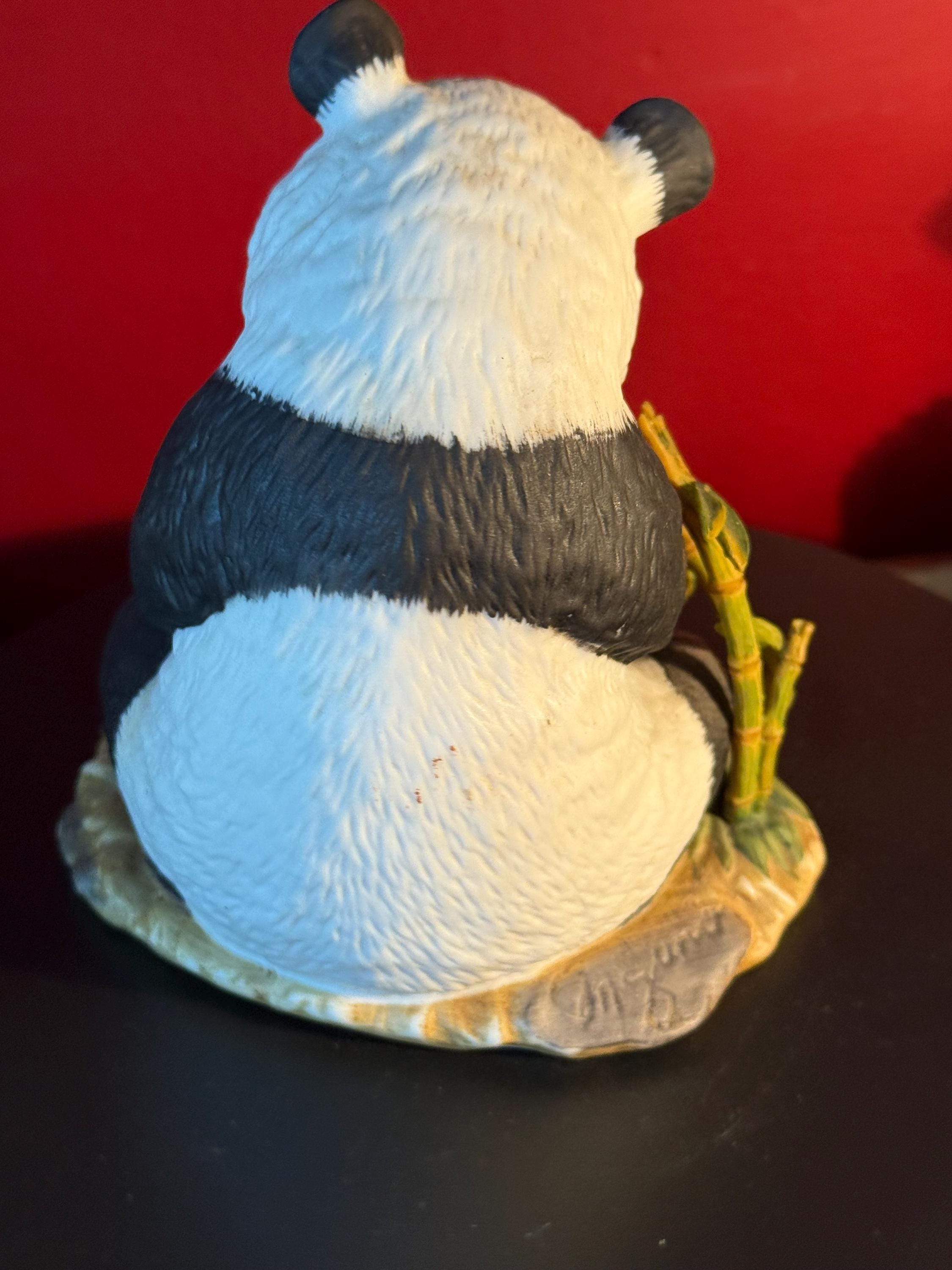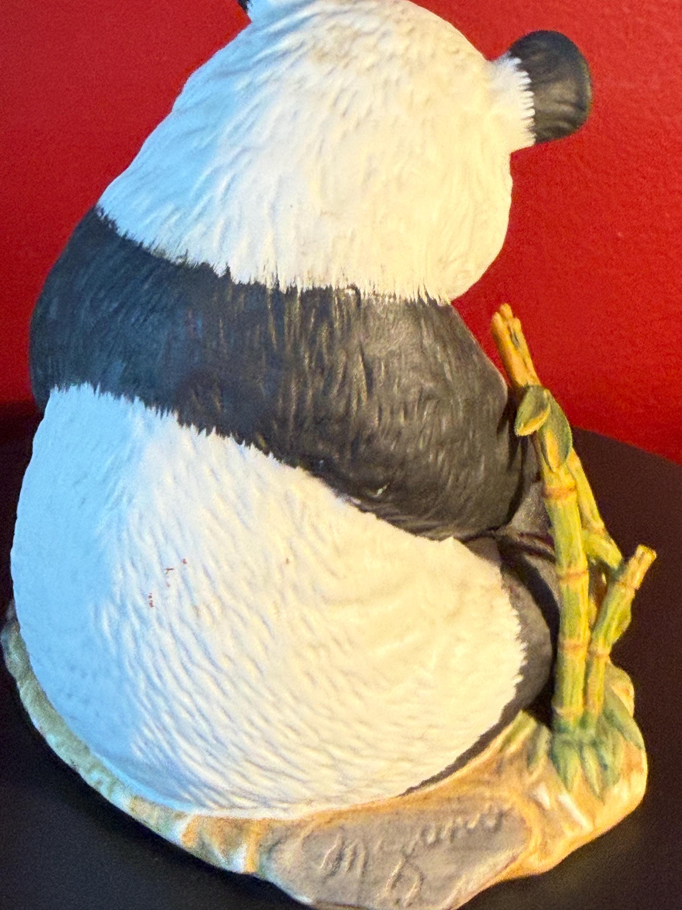 This Vintage Panda Bear Mother and Cub by Masterpiece Porcelain Homco is a charming collectible figurine that captures the tender moment between a panda mother and her cub. Crafted from high-quality porcelain and featuring exquisite black and white detailing, this piece is a beautiful example of Homco's artistry and attention to detail. The sculpted bamboo accents add to the naturalistic design, making it a perfect addition to any animal lover's collection.